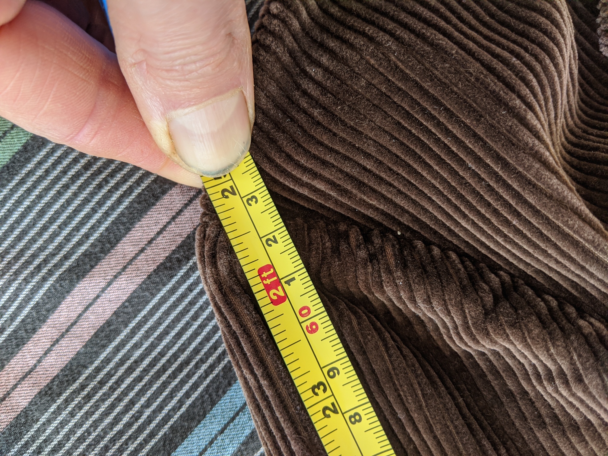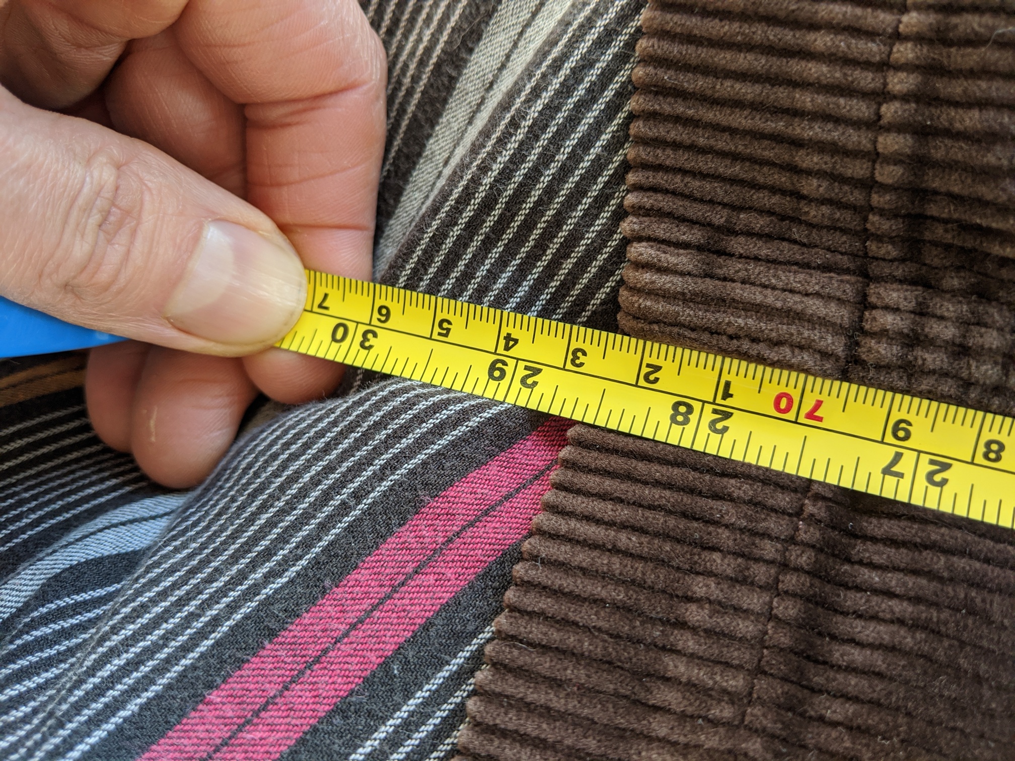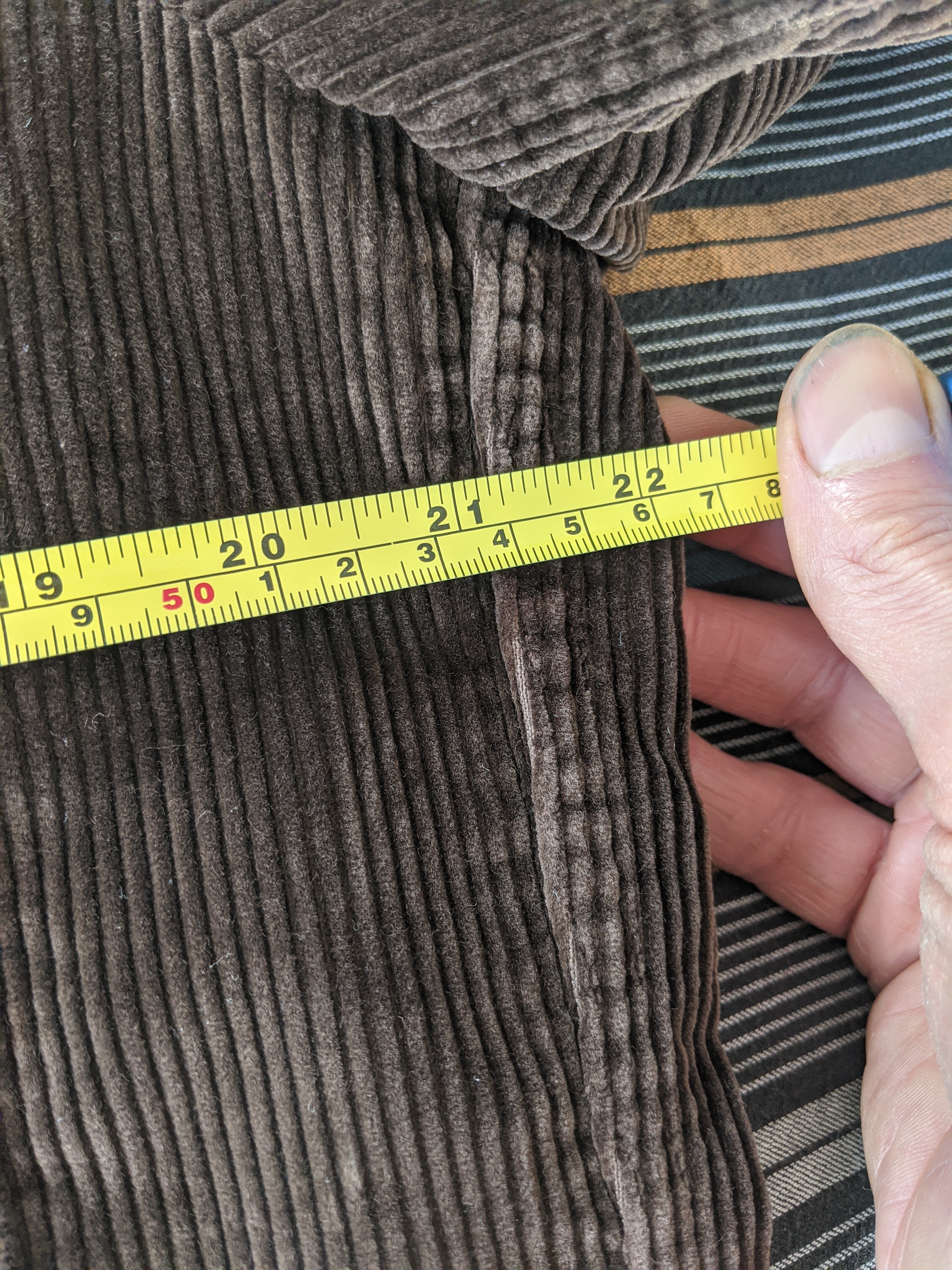 Après pour avoir fait des mesures sur des vêtements 1St Pat, ça dépend aussi beaucoup de comment tu mesures, a un centimètre près, selon où tu démarres… après perso je n’ai jamais eu de soucis sur une dizaine de pièces commandés. J’ai contacté Cristiano au sujet de ce blazer en corduroy. Tu imagines sa réaction