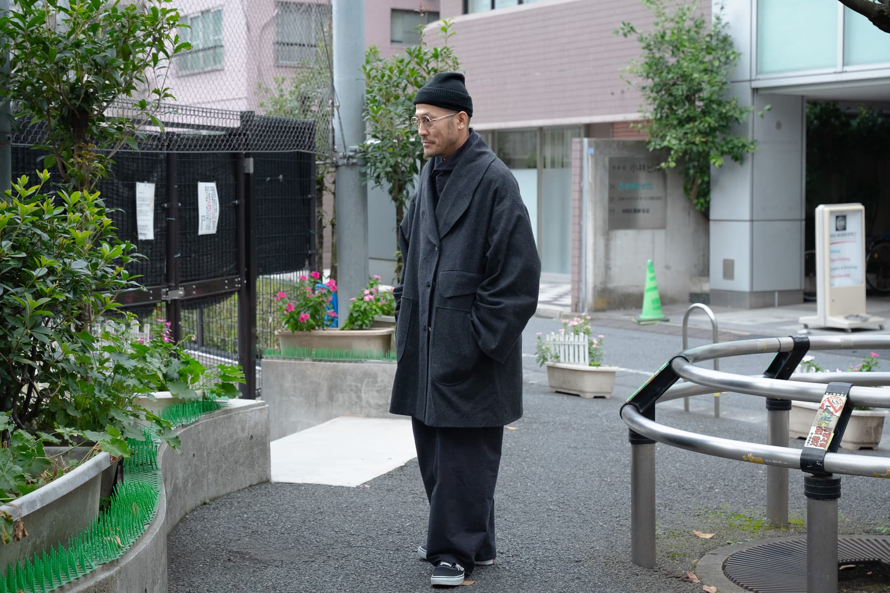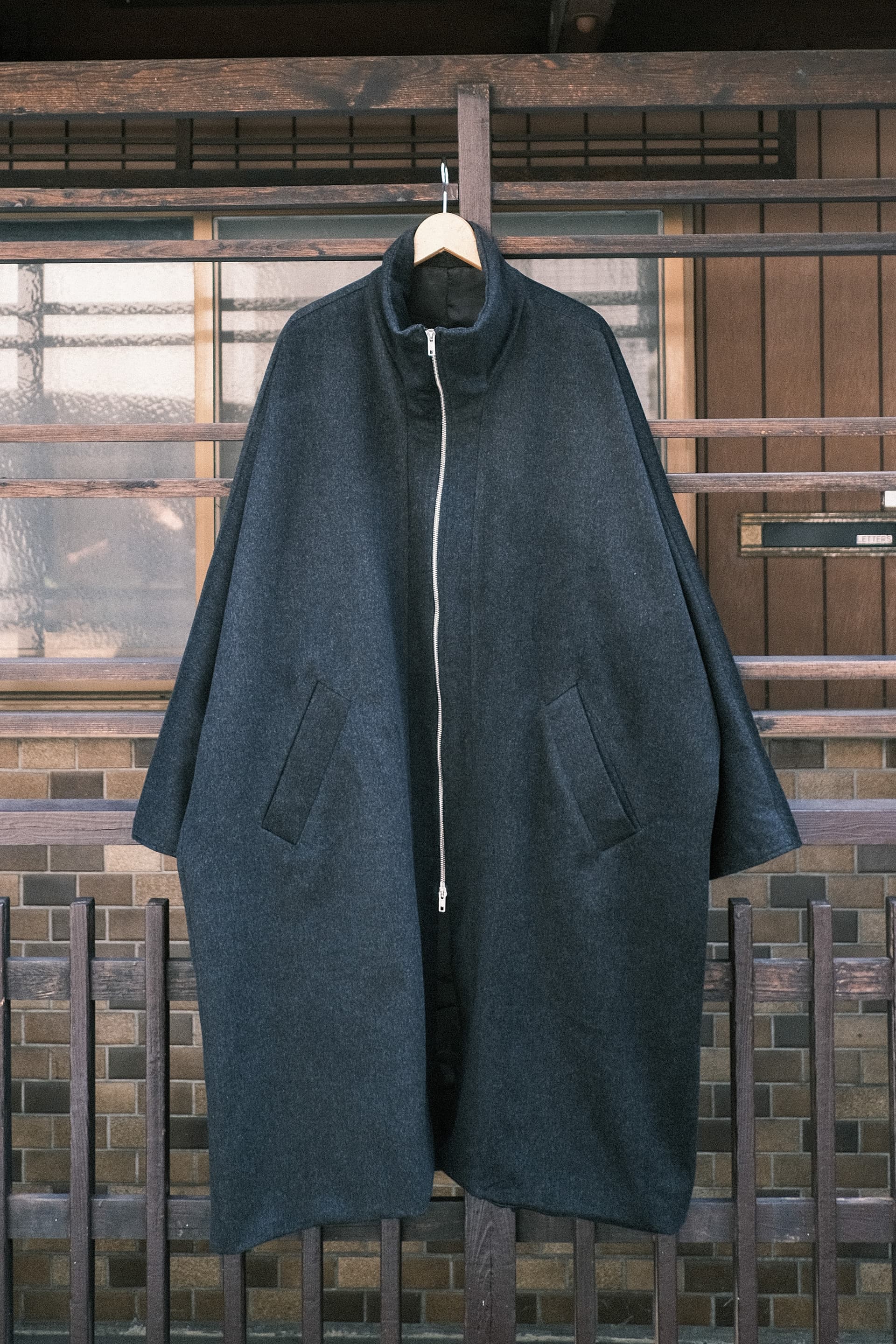 Le TANZEN, notre manteau long et oversize, revient aussi dans ses deux déclinaisons emblématiques : un lainage beige à motif tartan et un sergé de laine noir.