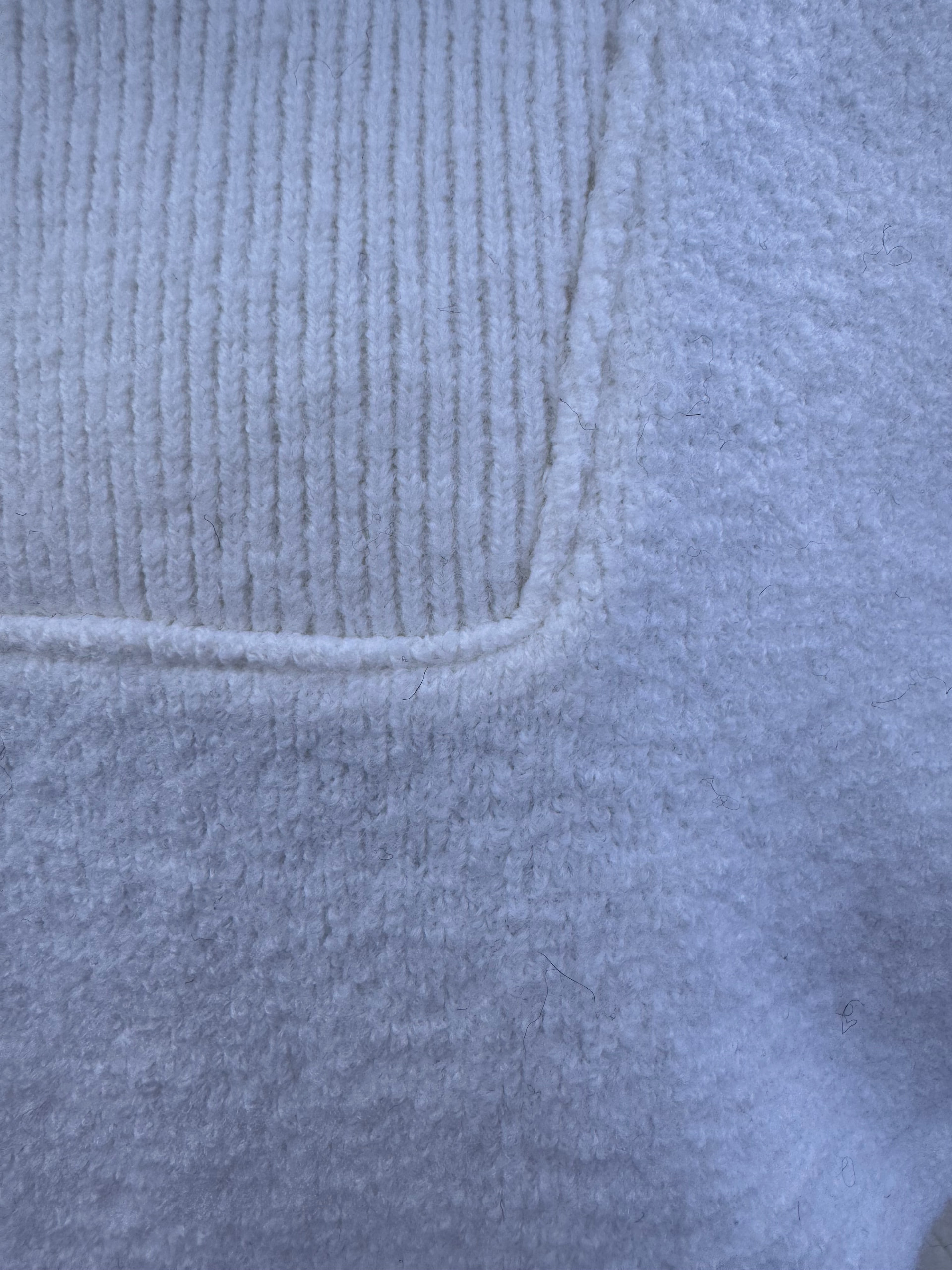 J’ai un truc avec les pulls blanc une sorte de madeleine de Proust (j’ai le souvenir d’une vieille maille Lacoste blanche que j’ai portée tout le lycée jusqu’à usure complète un peu mon pull fétiche de l’époque) donc ça m’a pas plus choqué que ça d’investir dans un pull/maille blanche, j’ai d’ailleurs un cardi Georges blanc également, mais oui l’usage est limité j’en ai conscience.