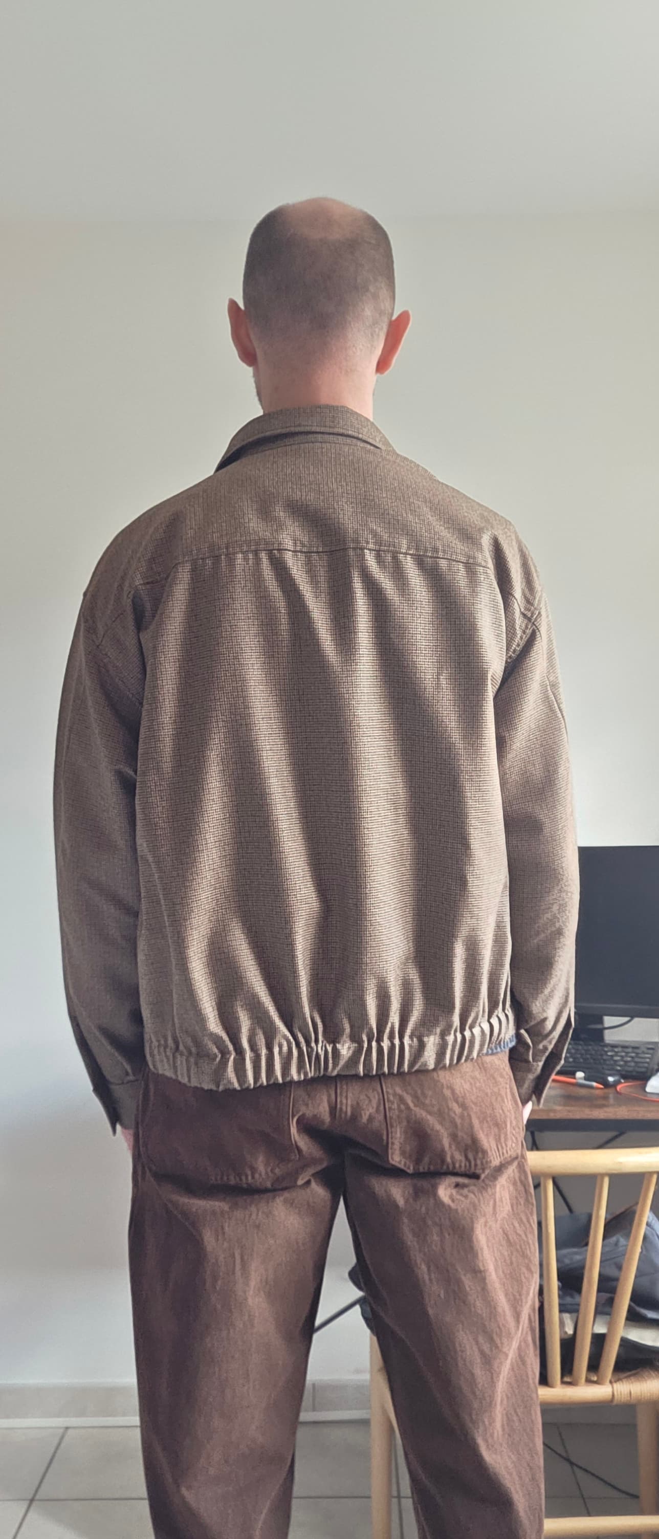 Blouson à la coupe courte bien boxy, la coupe est vraiment sympa. Comme dit au dessus je pense qu’il est un peu plus court que le précédent de la collection printemps été, et la manche retravaillée.