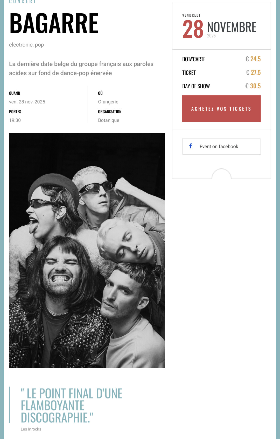 Trop bien Bagarre! Il faut profiter dâeux avant la fin. Jâavais loupĂ© les places pour la derniĂšre Ă la Cigale et il ont finalement rajoutĂ© une avant derniĂšre Ă lâ Elysee Montmartre, jâai pas hĂ©sitĂ© ![]()