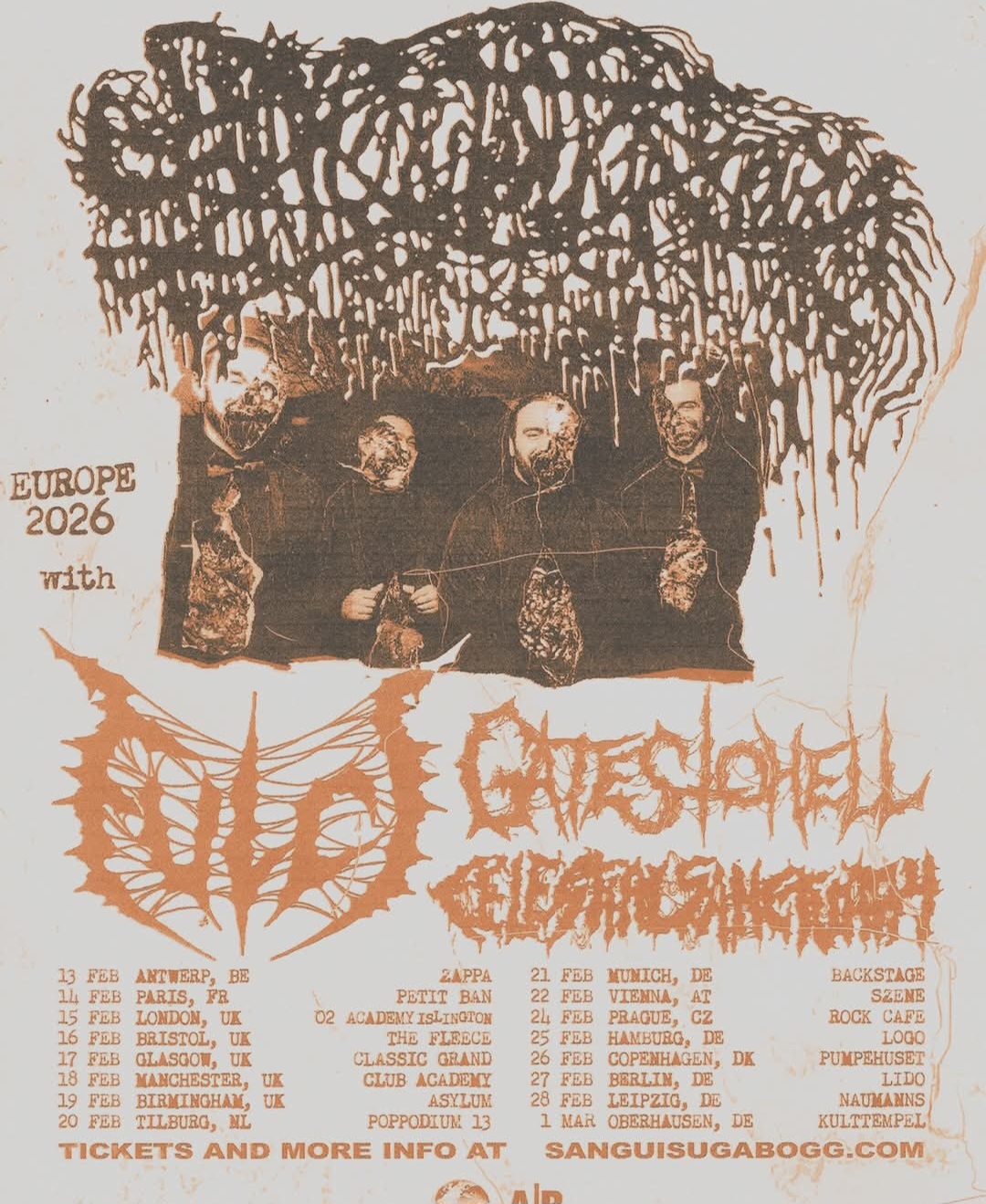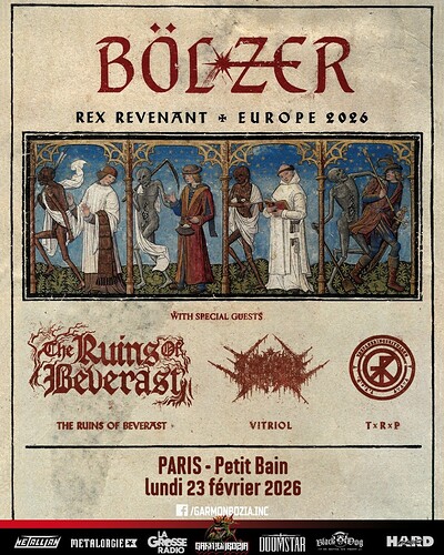 En complĂ©ment pour fĂ©vrier, Sanguisugabogg grĂące (ou Ă cause, lâavenir me le dira)Ă jeje, et une dose de hardcore au Glazart avec Sorcerer.