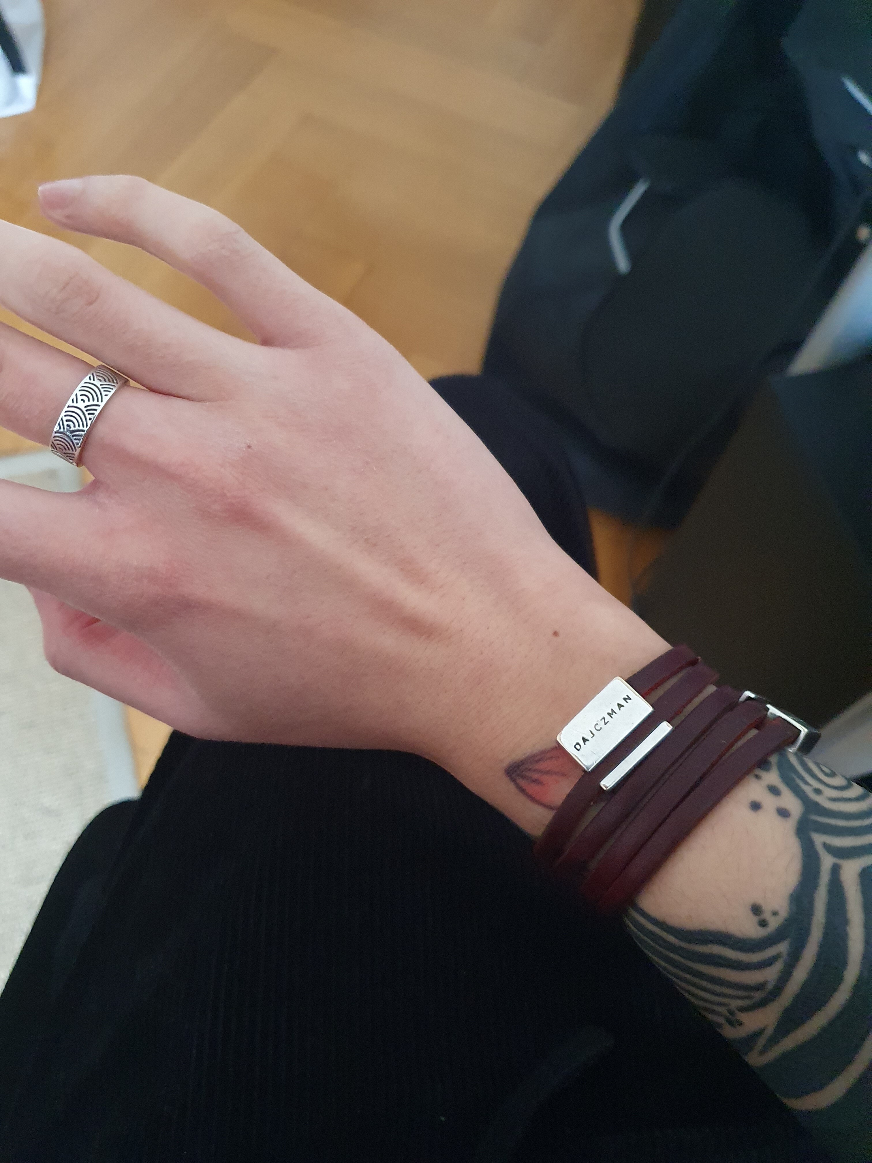 - bracelet laiton chopĂ© par ma femme au Burkina. Je lâaime bien parce quâil est trĂšs imparfait et asymĂ©trique
