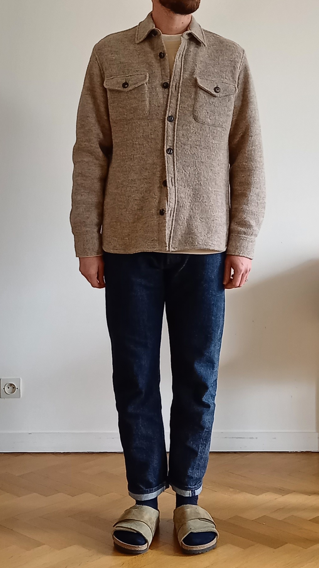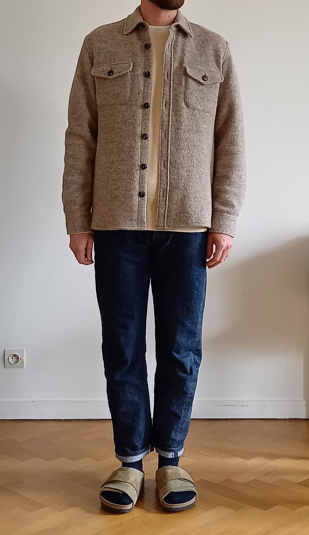 Je t’ai fais qq pics, avec un sweat poids moyen + tee sous la surchemise.