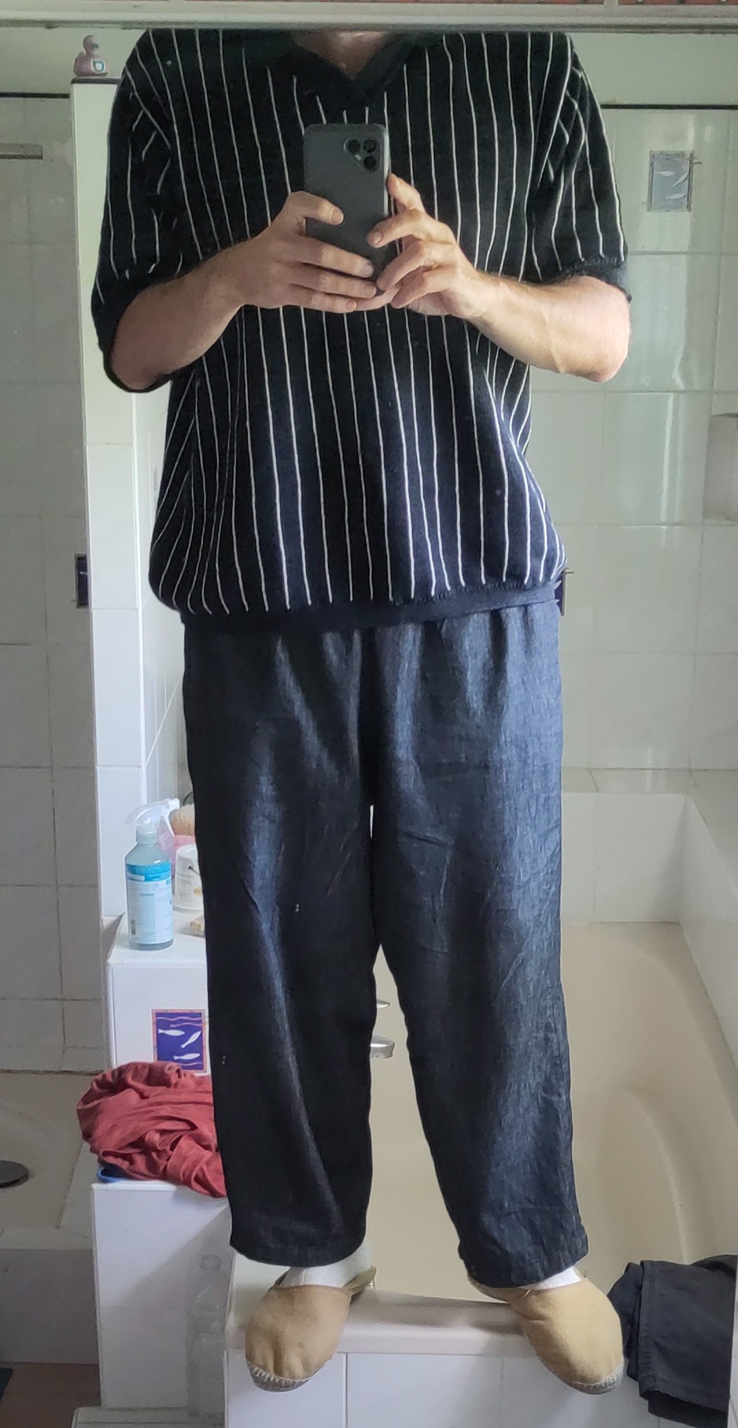Le 3L aurait sans doute convenu aussi ; avec le 5L, je retrouve des volumes similaires au one pleat de EK auquel je suis habitué maintenant. C’est clair que lavé le tissu est nettement plus fluide et là on commence à s’amuser !