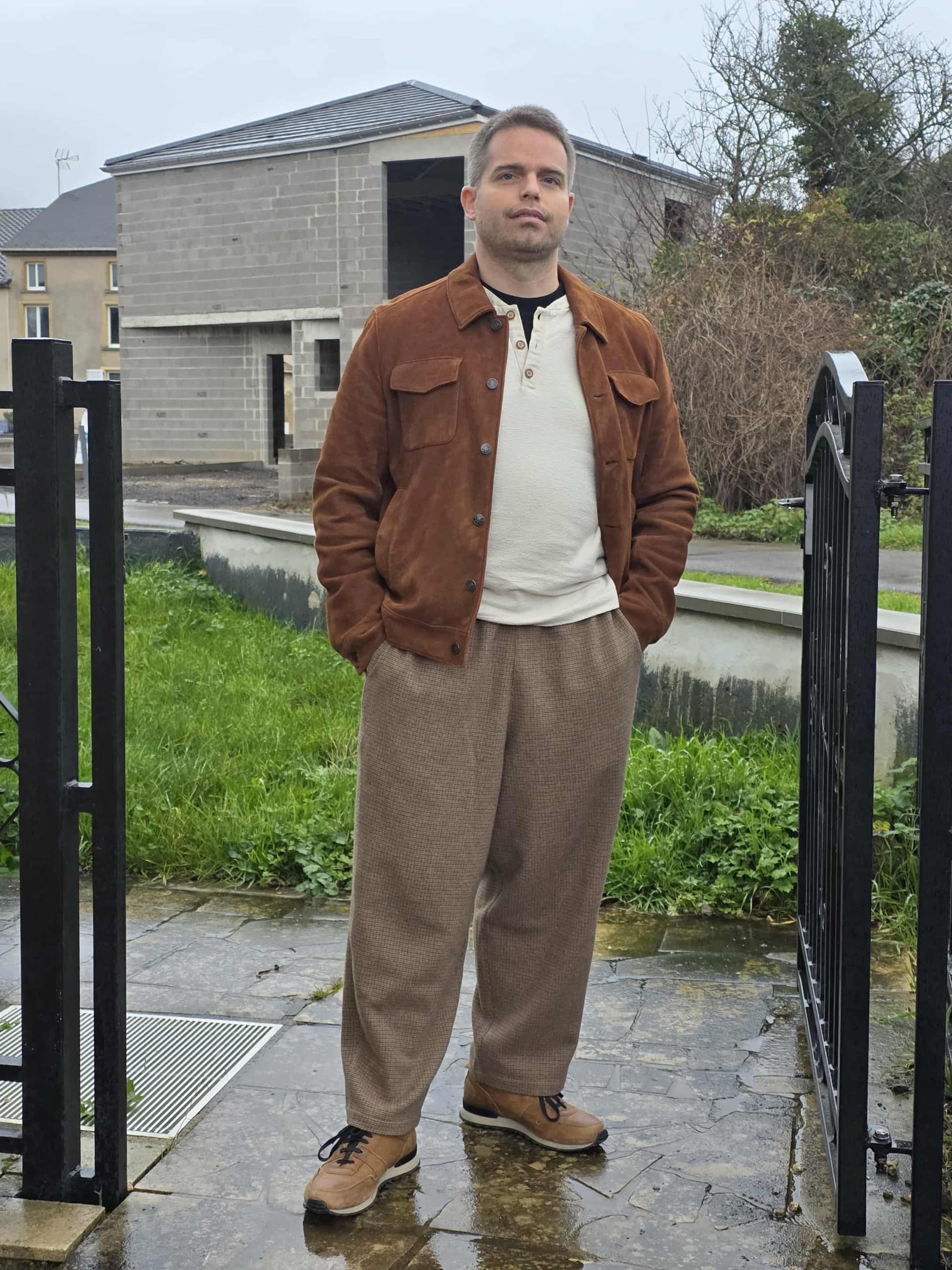 Sinon, petit message pour dire à quel point je le trouve vraiment canon ce pantalon. Bravo à vous Boris et @jbpaname ; la matière est vraiment jolie un motif travaillé mais discret et elle est très agréable à toucher. La qualité de confection est vraiment élevée, au niveau des coutures, des ourlets. C’est très propre. L’élastique et le cordon font aussi très qualitatifs. La coupe est canon ; ça fait plaisir de voir un patronnage maison travaillé comme ça. Vous y avez passé beaucoup de temps et c’est une réussite. Donc un confort + +.