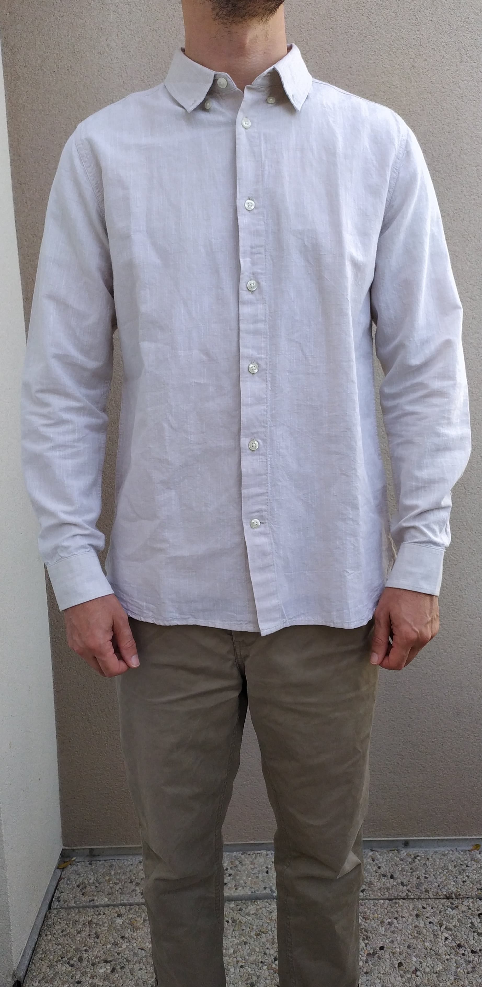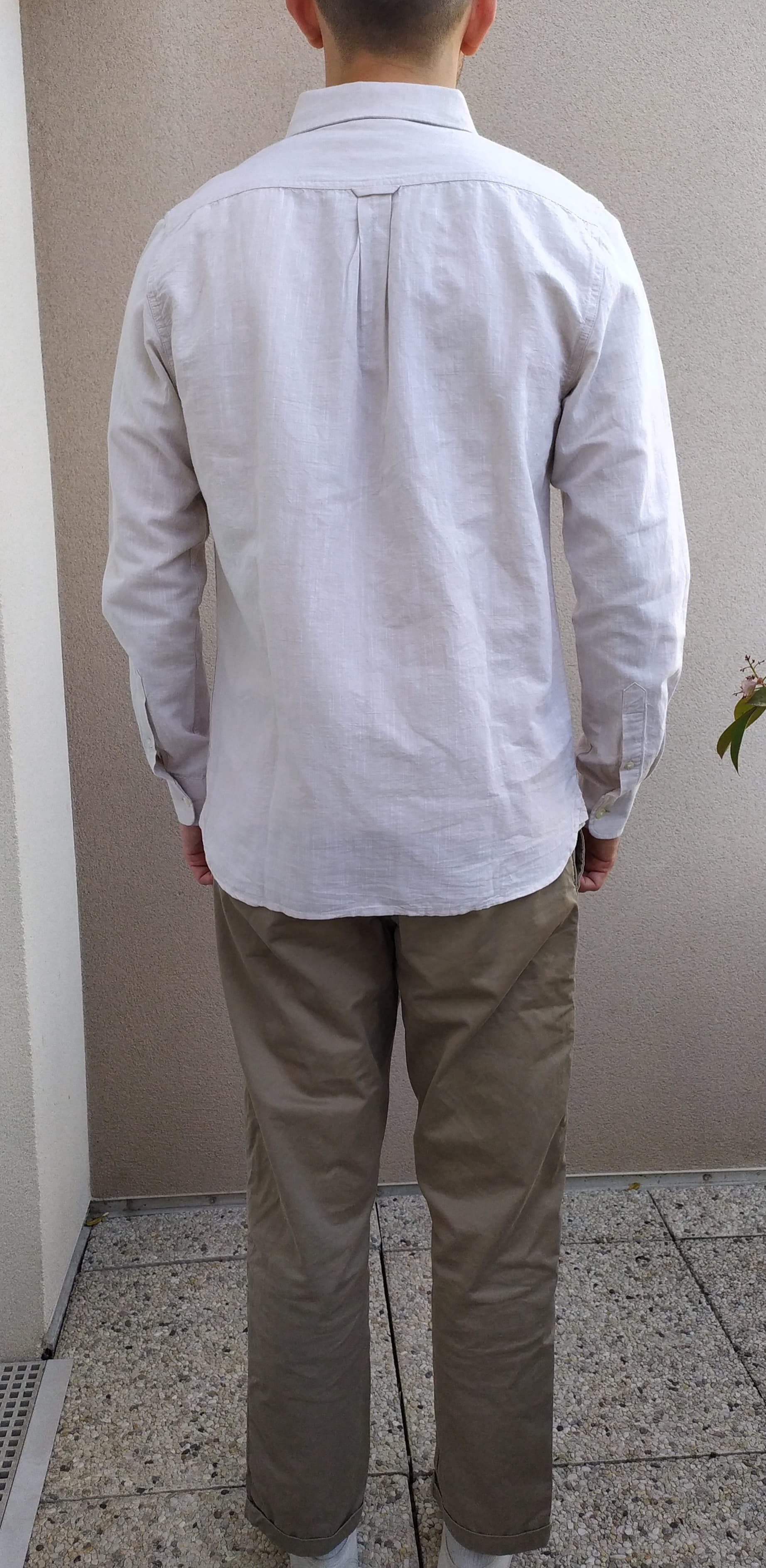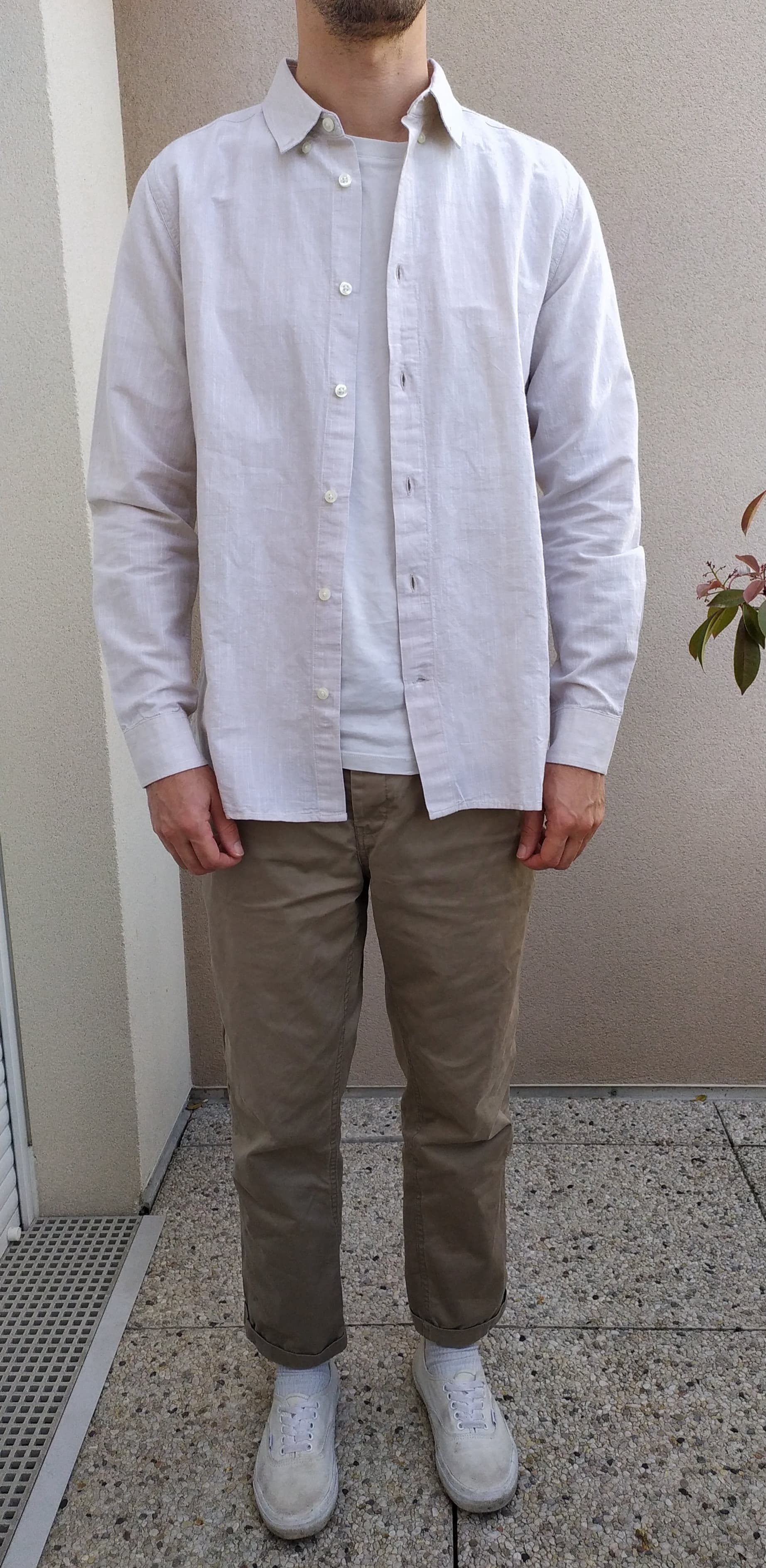 Jâai finalement dĂ©cidĂ© de la prendre, je ne porte jamais de chemise mais je me dis comme 1ere chemise câest simple et passe partout et le tissu est agrĂ©able en coton-lin, jâai pris quelques photos quâest ce que vous en pensez ? Je trouve quâelle me va plutĂŽt bien mĂȘme si elle est trĂšs simple.