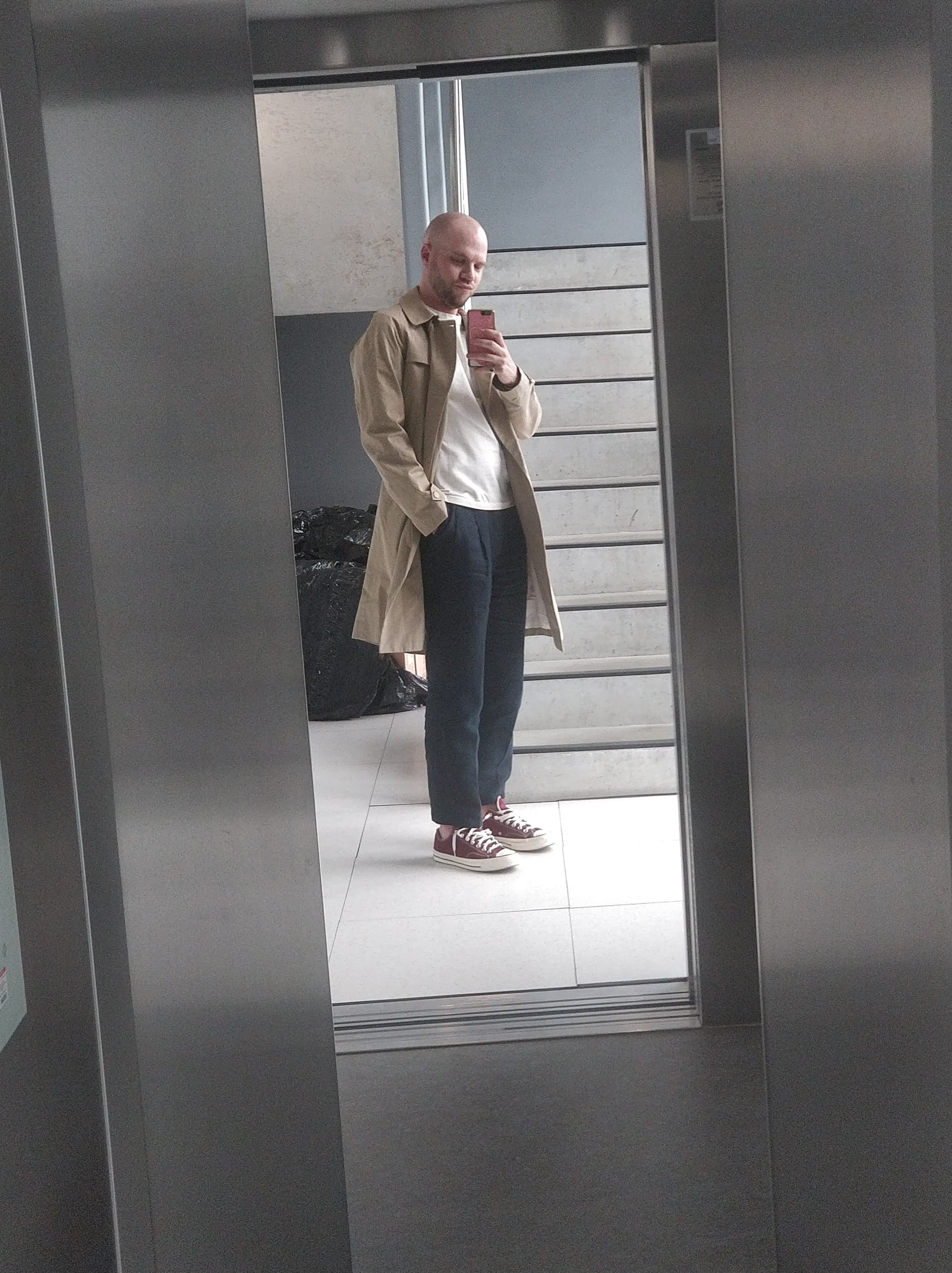 Ce sera parfait pour aller chercher les enfants a lâecole ⊠surtout le combo trench + casquette + lunettes de soleil, câest pas louche du tout