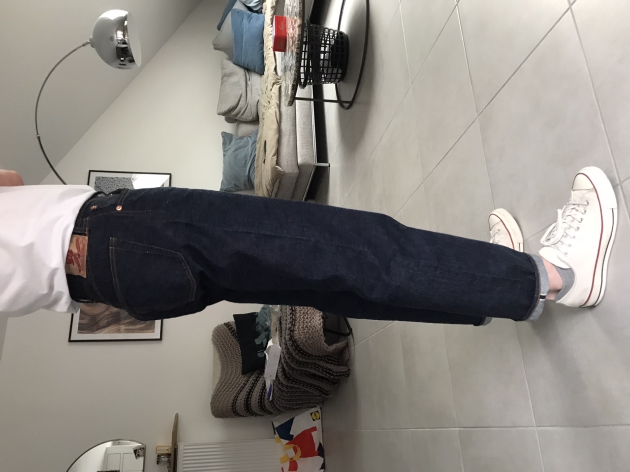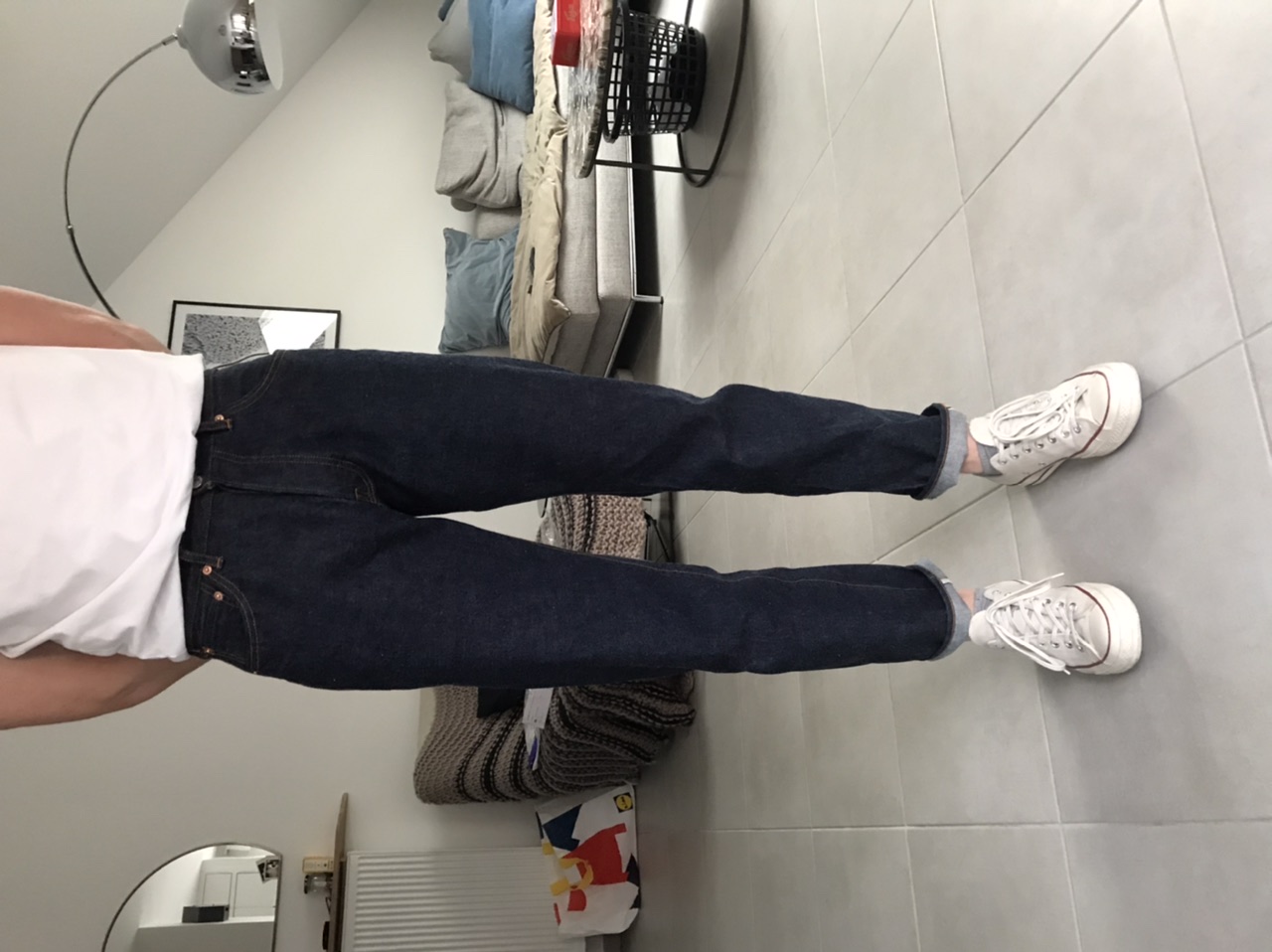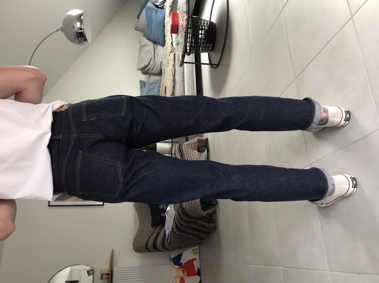 En fait, câest assez criant en regardant tes photos, mais la demi-fourche avant de ton jean nâest pas trĂšs longue ; lĂ , elle est tirĂ©e vers le haut : câest ça qui crĂ©e les plis que tu vois sur lâintĂ©rieur du haut des cuisses et ce camel toe.