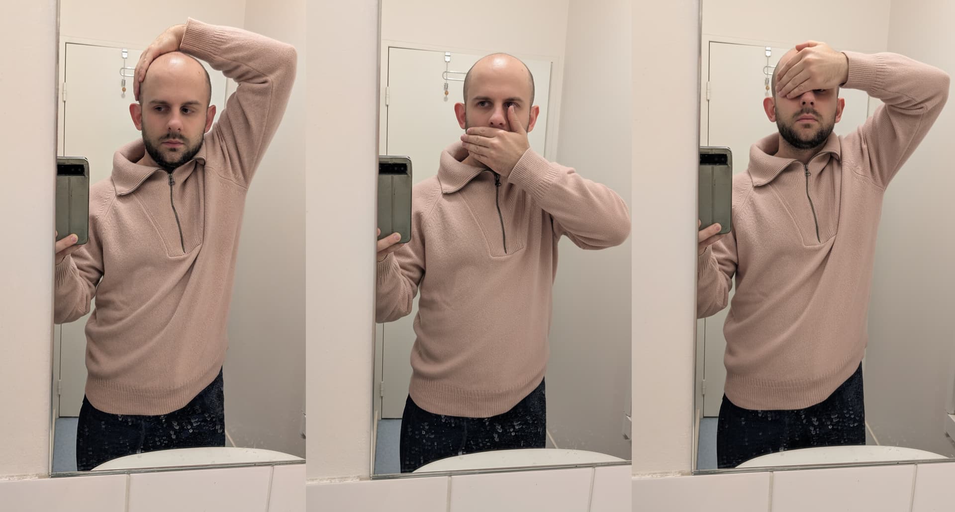 Essai de quelques piĂšces de la nouvelle coâ de Sillage. PiĂšces magnifiques mais, chemises et vestes, rien ne me va, mĂȘme en essayant dâimaginer dâĂ©ventuelles retouches et dâassumer le cĂŽtĂ© one-size/oversize, câest grotesque sur moi, je suis trop court sur pattes, trop petit buste, trop petits bras. Impossible Ă rattraper.