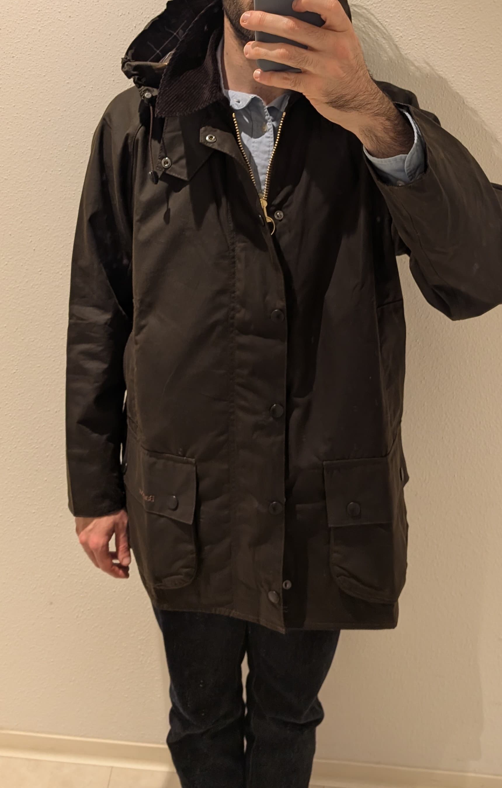 Jâai reçu aujourdâhui une veste Barbour Beaufort couleur Olive, en taille 42 pour mon 50/L habituel (1m85-78kg). CâĂ©tait la taille conseillĂ©e pour un L. Jây ai associĂ© une capuche afin dâen faire ma veste de pluie.