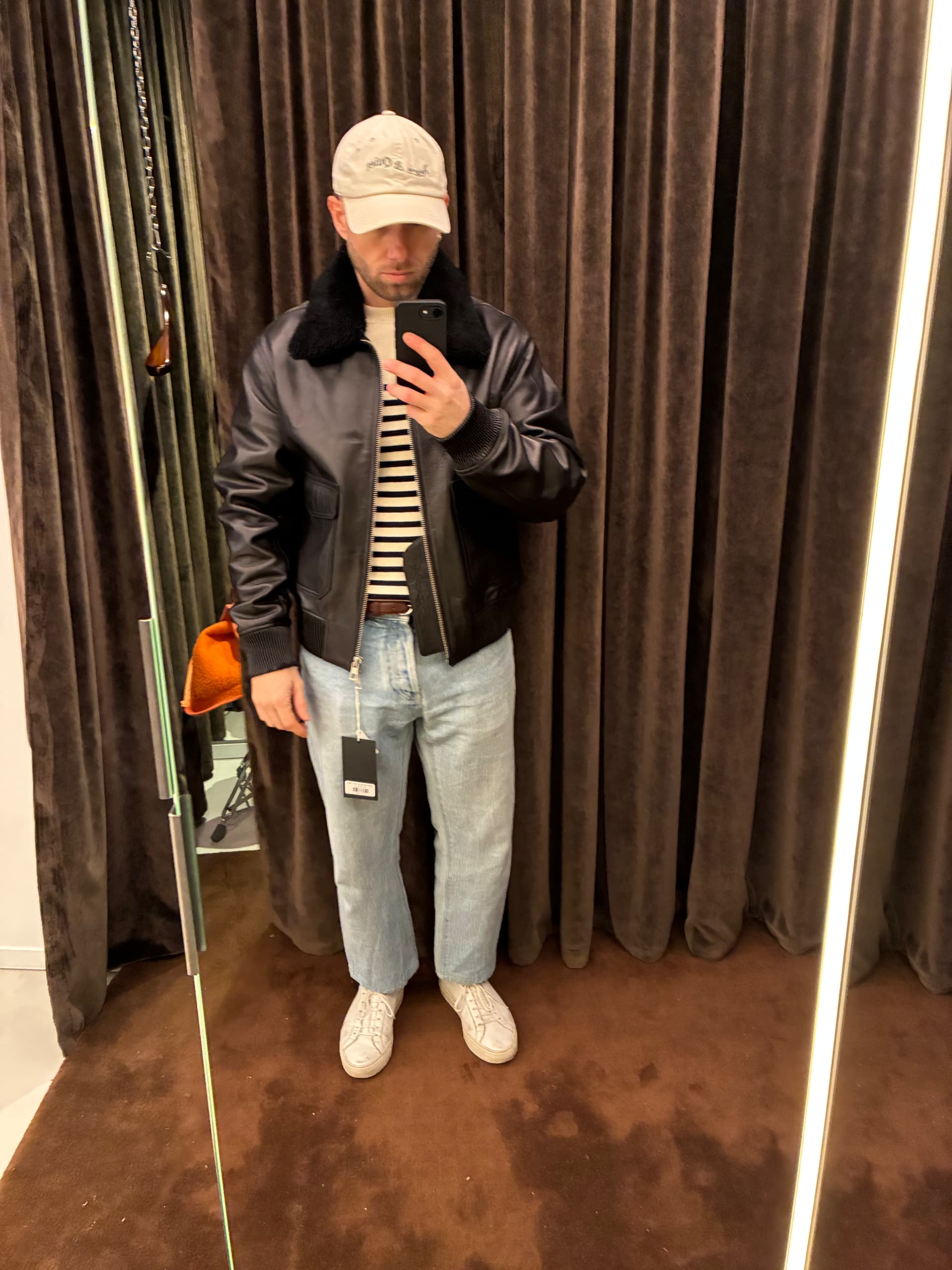 Pour les vestes dâaviateur de ce type, je les prĂ©fĂšre en marron foncĂ© plutĂŽt que noir, que je rĂ©serverais plus aux perfectos, mais ça ne regarde que moi.