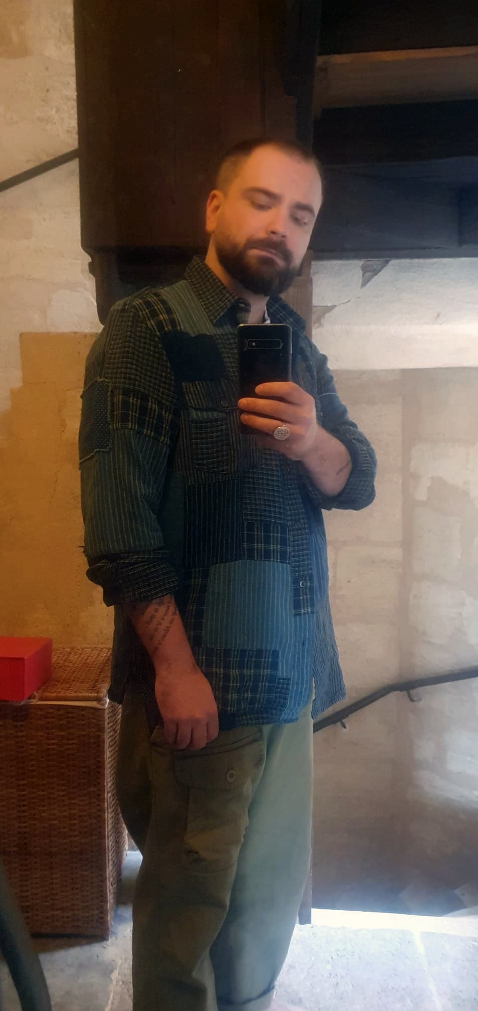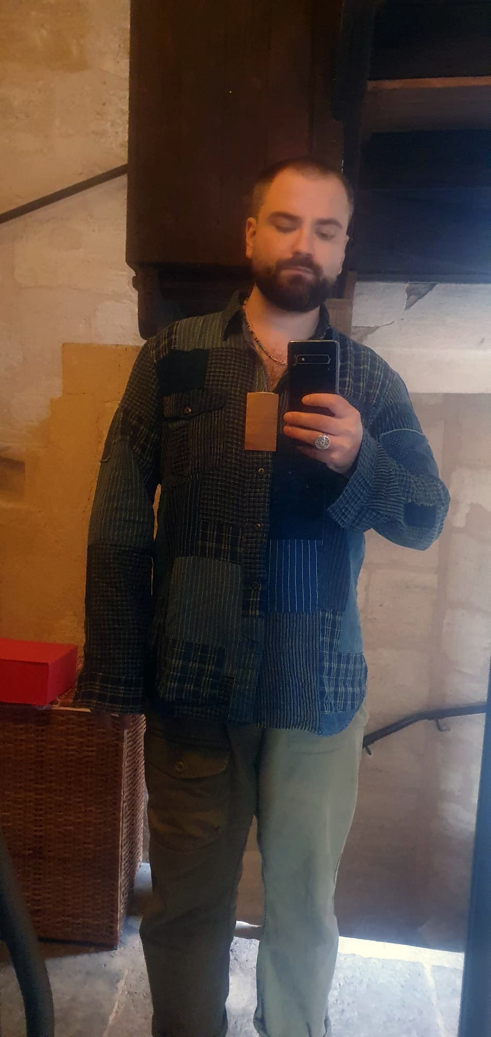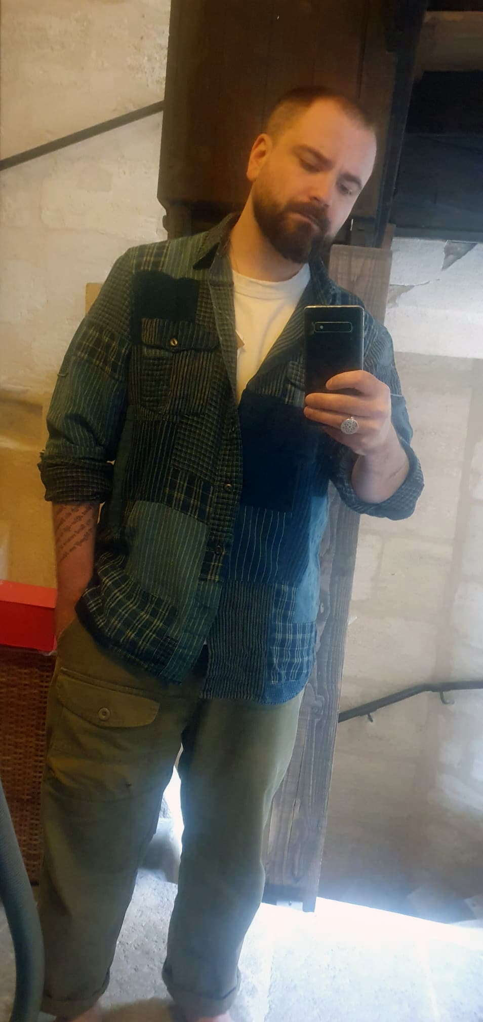 Si raccourcir les manches ne gĂąche pas le patchwork Ă cet endroit-lĂ , alors ma seule retenue (hypothĂ©tique) concernerait la longueur du corps de la chemise, car elle te contraindra Ă porter des pantalons Ă fourche basse ; sinon, elle tombera probablement sous la fourche dâun pantalon/jean Ă coupe classique et cassera les proportions gĂ©nĂ©rales de la silhouette.