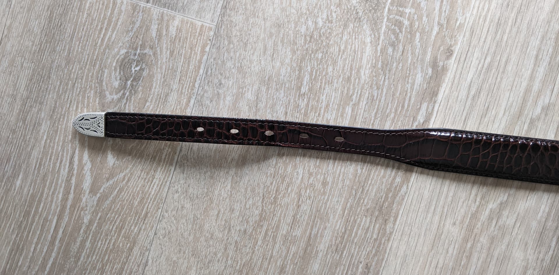 A ce prix, la qualité me semble au rendez-vous : sans être expert, le cuir est souple et me semble de qualité, ce qui est un plaisir à enfiler. Le motif crocodile apporte un plus supplémentaire, en restant discret. Jolie métallerie couleur argent, pas trop épaisse.