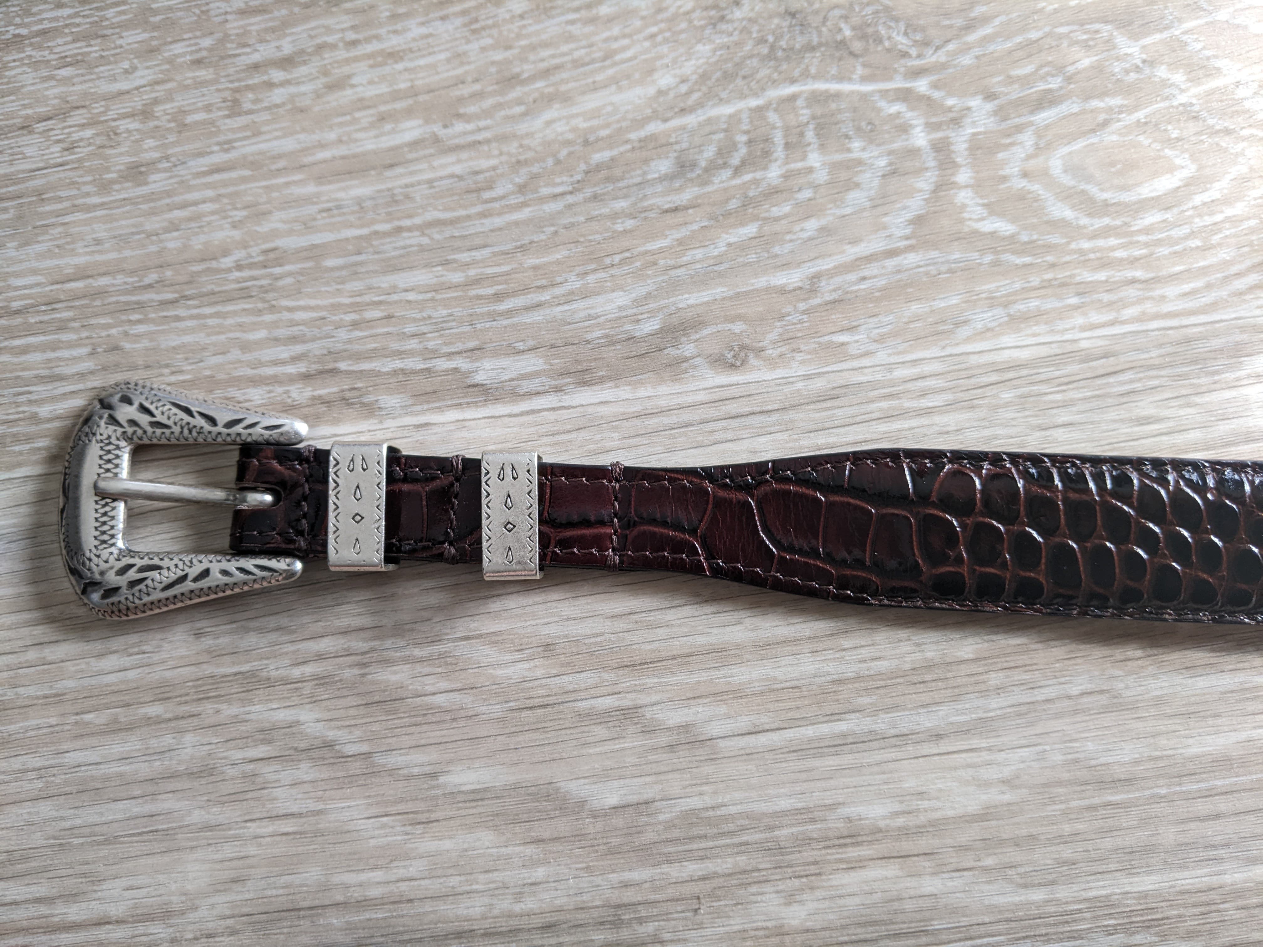 Cette ceinture western vient ainsi idéalement compléter ce que j’ai déjà : des ceintures de 3cm pour aller avec un costume, une ceinture sans couture plus workwear et une Portia1924 à 2,5cm en cuir suédé. Me reste plus qu’à m’en trouver une en noir ![]()