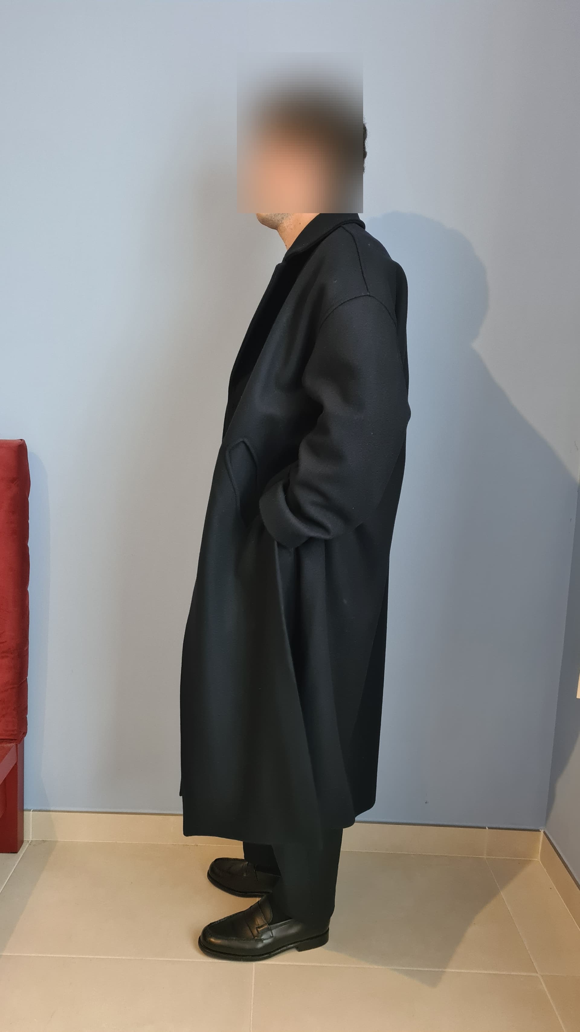 La taille du manteau est en effet un peu déstabilisante au départ, surtout qu’il est fort raide à la sortie du carton, après je pense que je vais vite m’y faire