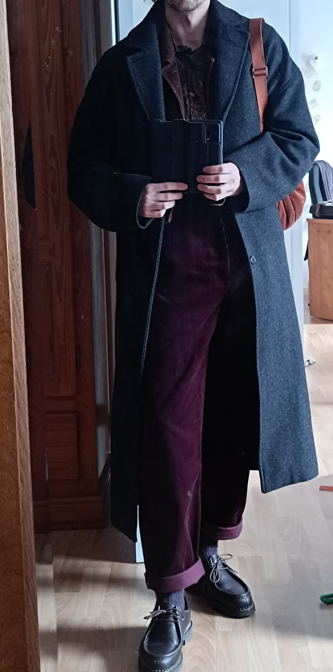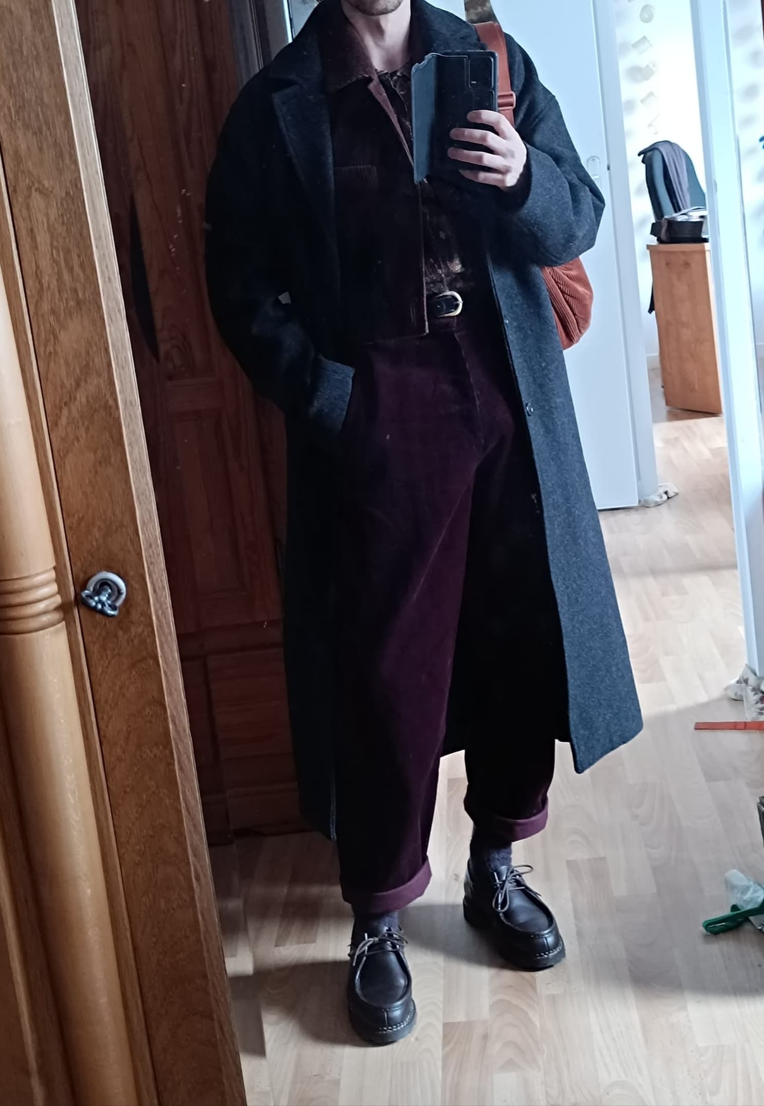 Le seul problème si s’en est un c’est l’accès aux poches du pantalon à travers les fentes qui devient légèrement moins évident plus on augmente la taille du manteau mais que les jambes ne s’allongent pas…