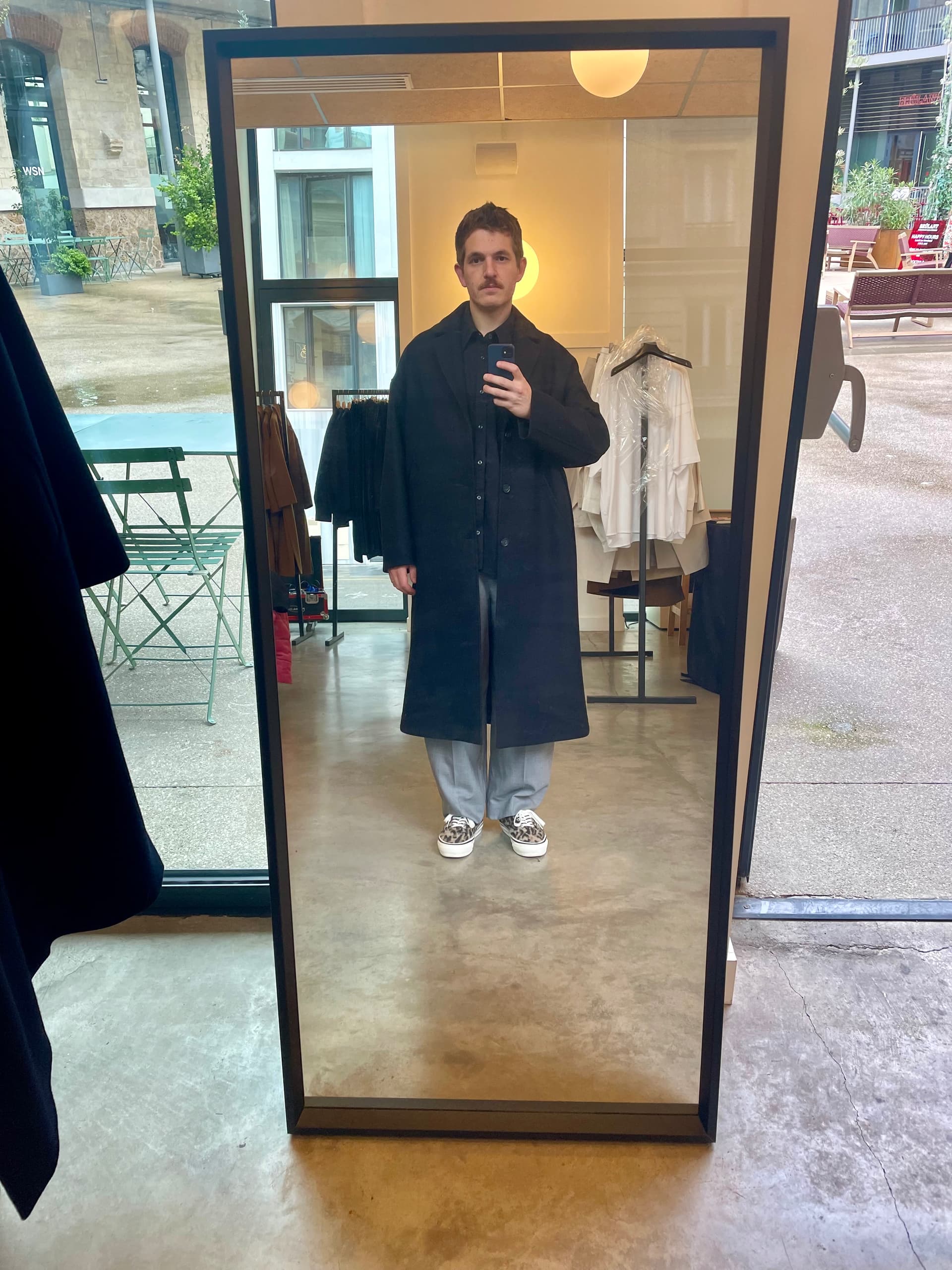 Par contre l’association du col assez classique/habillé, avec le côté oversize a la cool jure un peu, et pour avoir chaud c’est pas idéal.