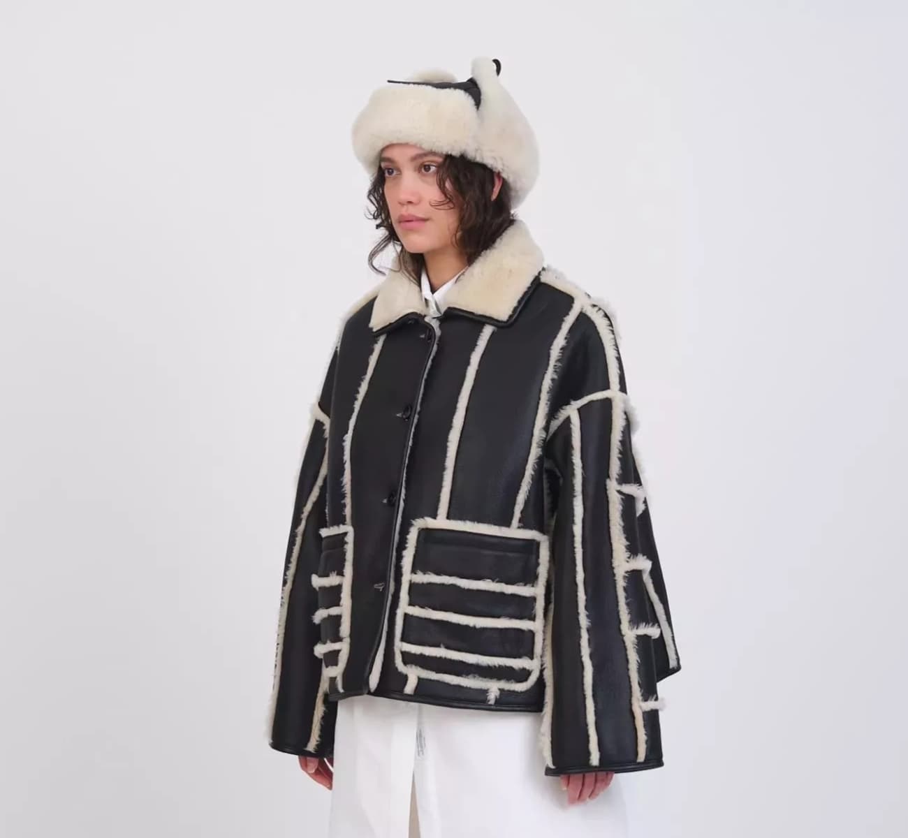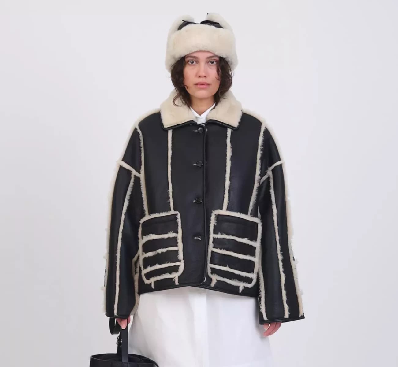 Après d’interminables et immémorielles recherches j’ai potentiellement enfin trouvé deux options pour le shearling de mes rêves, le dernier graal manquant à ma collection (ne prêtez pas attention au panier garni sur la tête de la mannequin) :