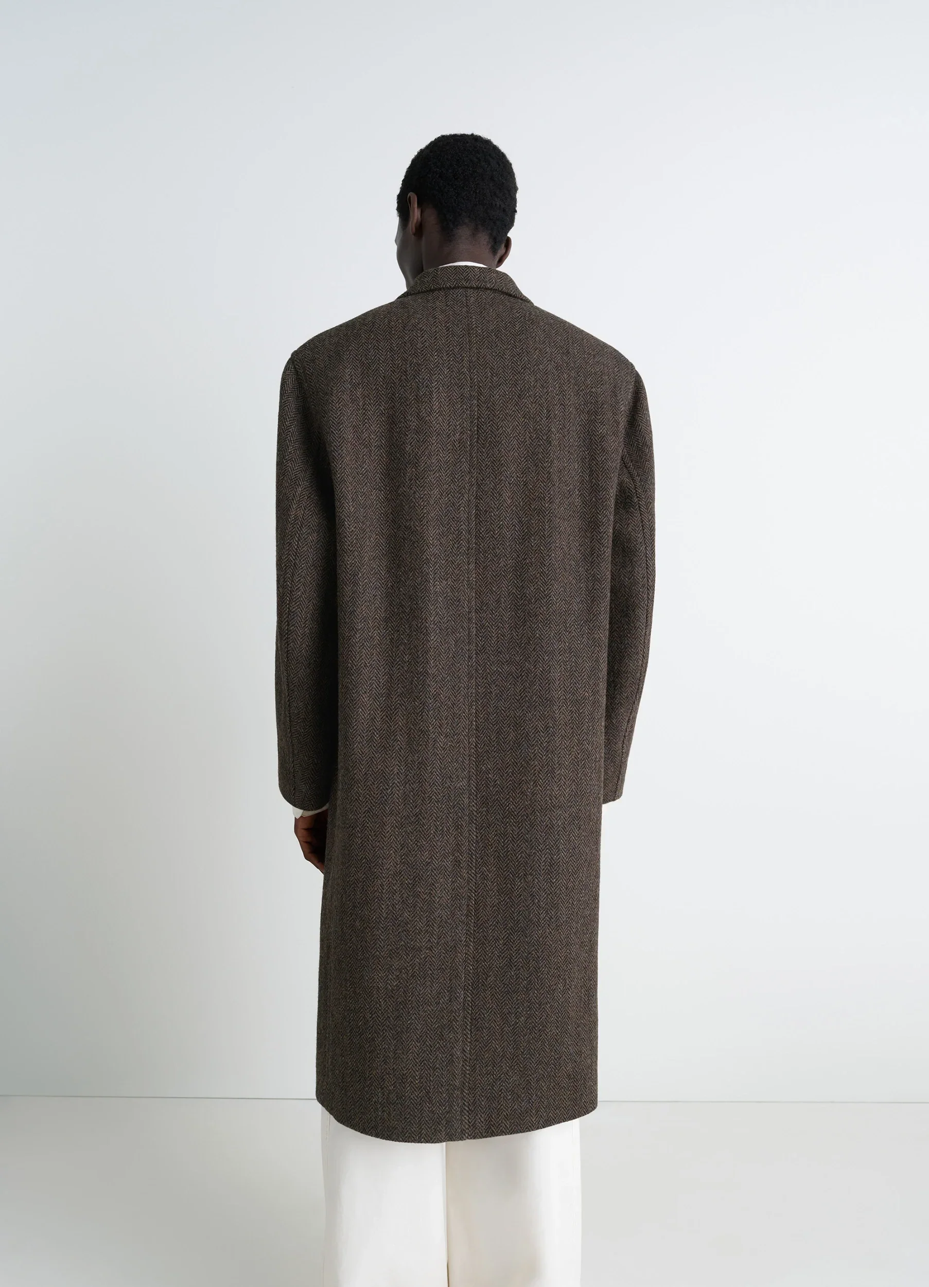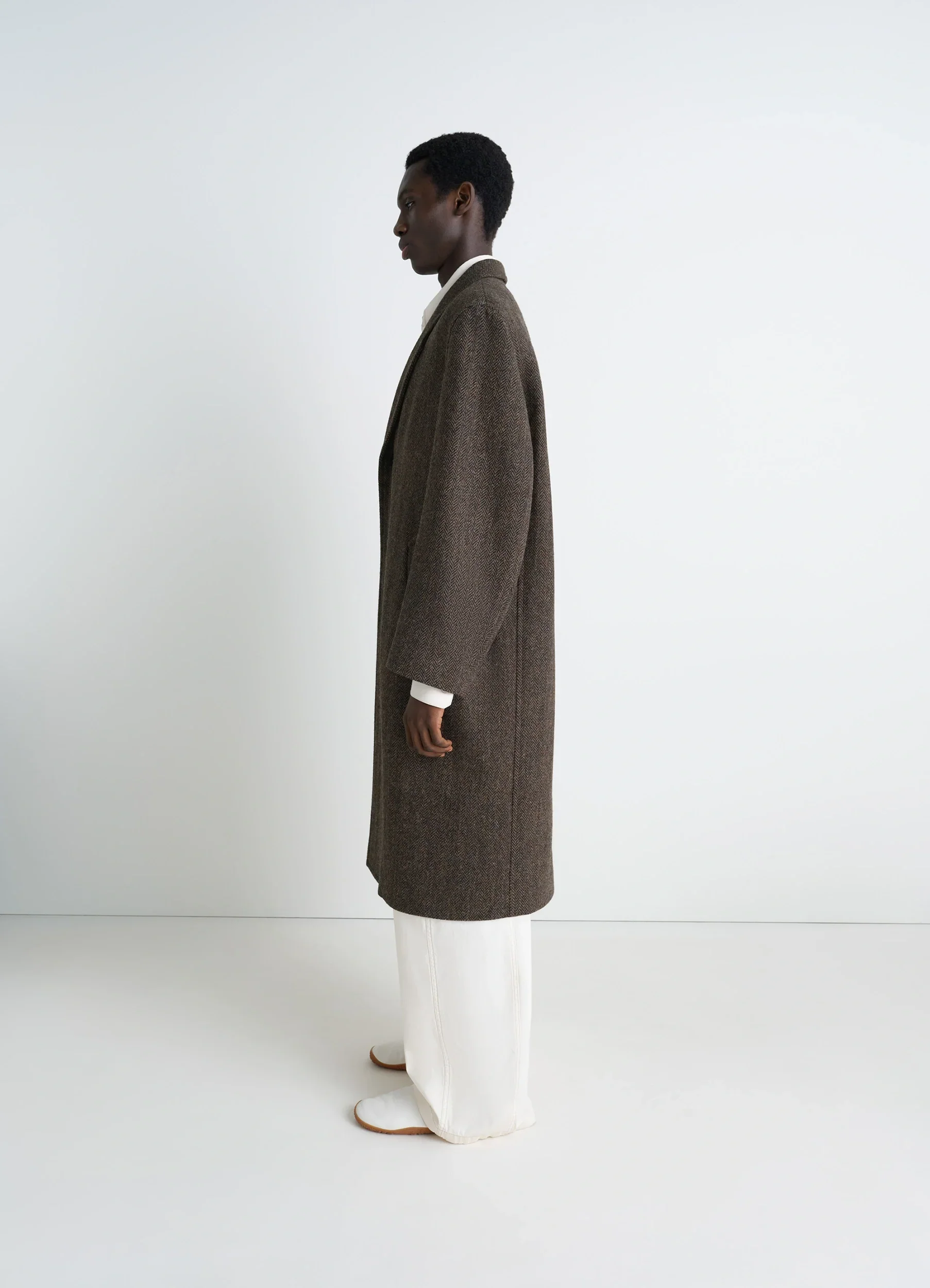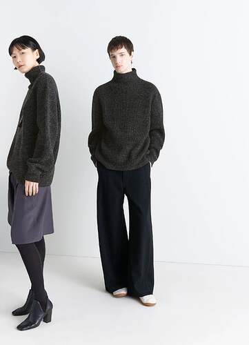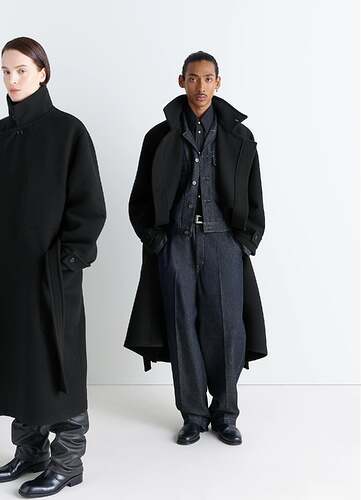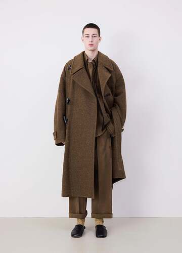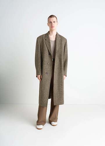 Pas vraiment sûr de la valeur ajoutée de ce manteau en Harris Tweed face à la concurrence classique qui facture moitié moins. Faudrait voir/essayer la coupe en personne pour s’en assurer. J’aime bien la forme et le volume des manches sur la photo de profil. Le motif chevron atypique de la version black/straw a attiré mon regard aussi.