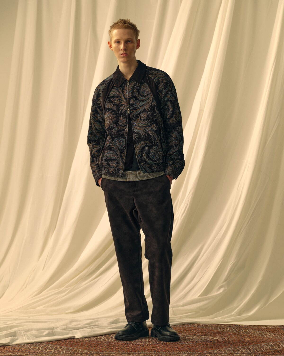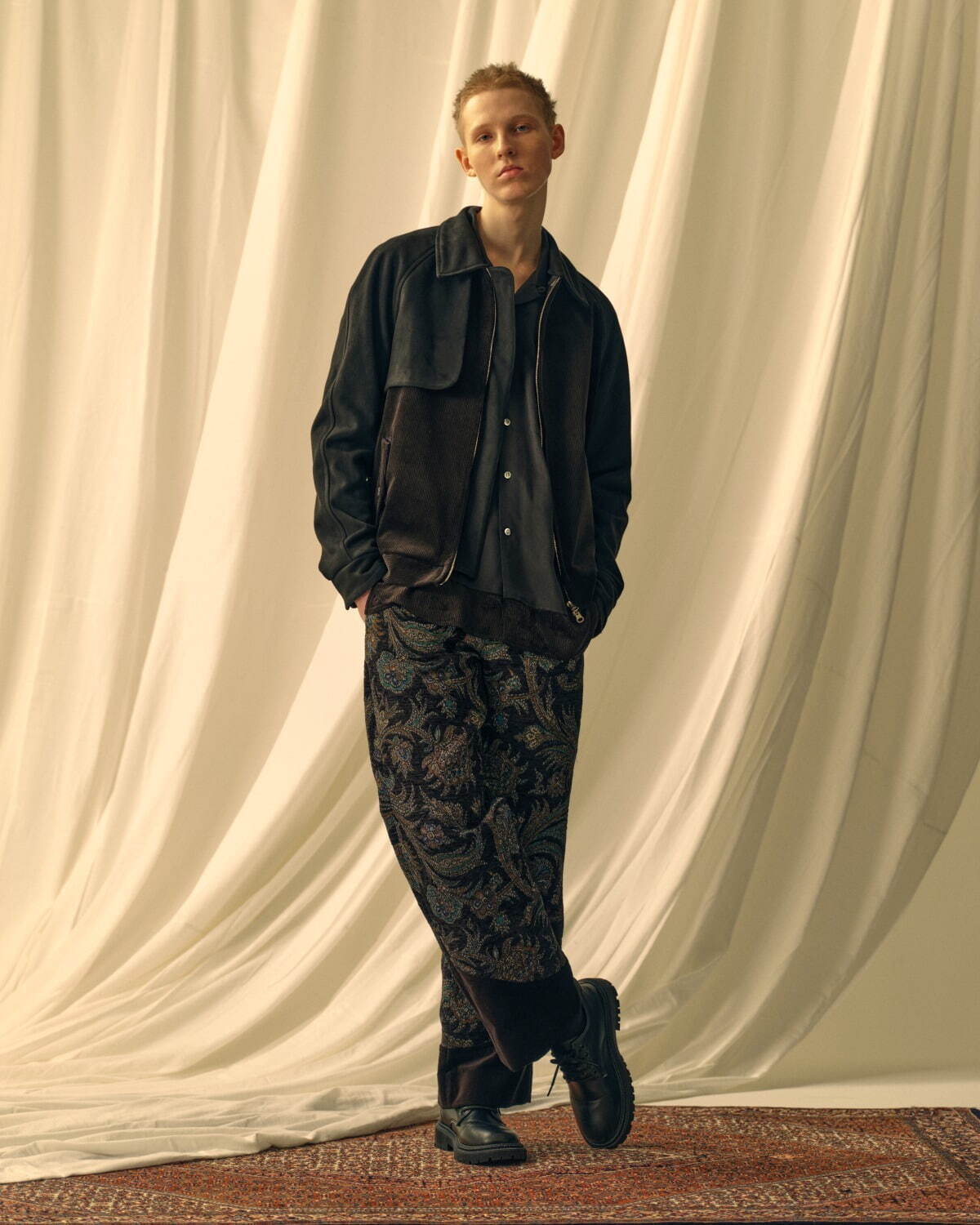 Mahito Motoyoshi, jeune (29 ans) designer avec une expérience de modéliste chez CDG avant de lancer sa marque éponyme en 2022 (première collec : PE23).