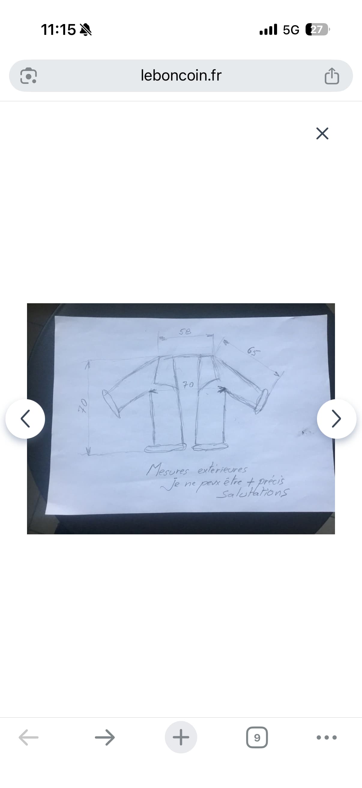 Jâai eu ça comme mesure mais pour un taille L ça me paraĂźt bizarre non vos avis ?