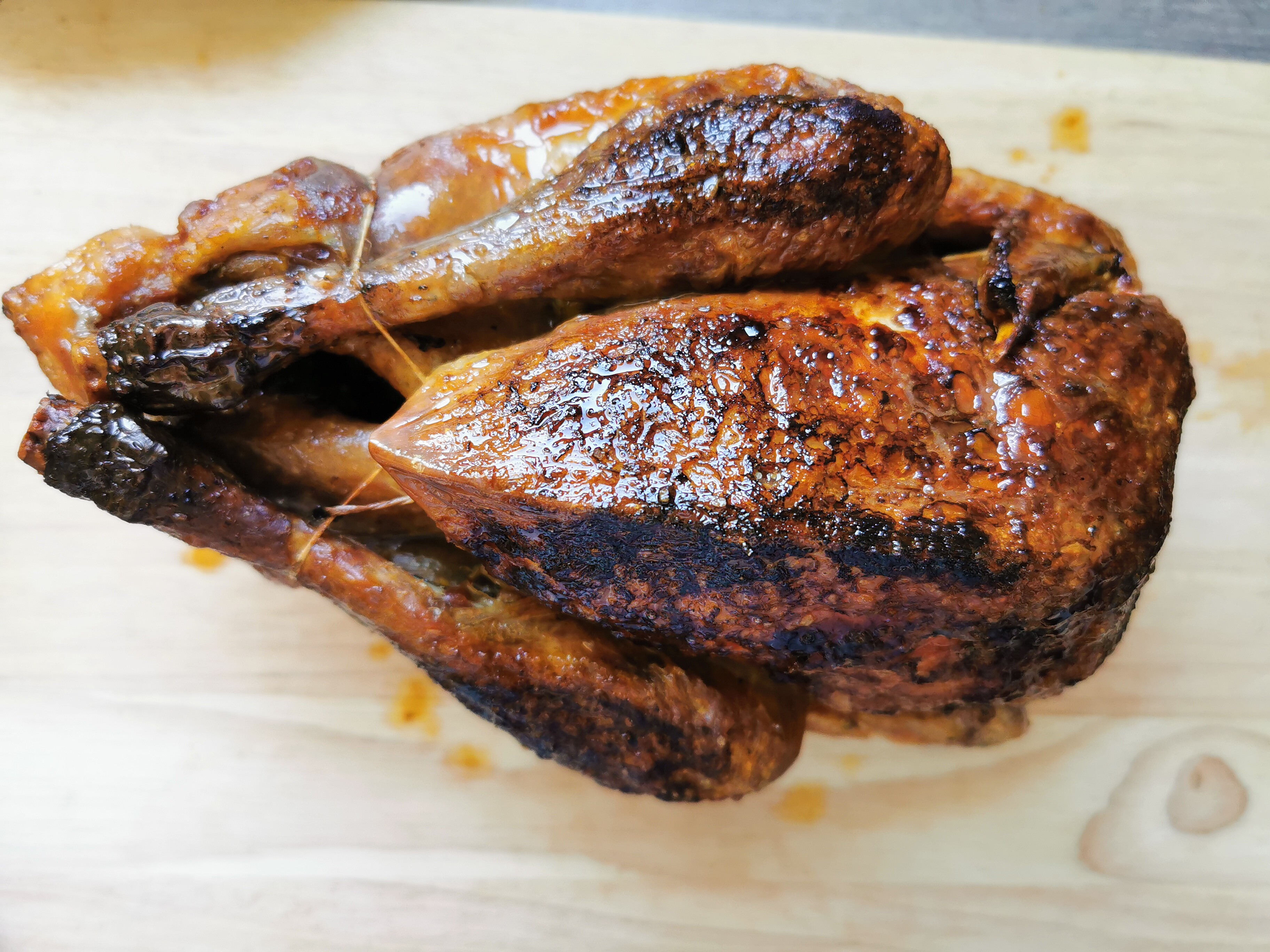 - Fourrer des herbes aromatiques, de lâail, en option du citron dans le cul de la pintade (ici chĂšvre feuille et estragon + ail )