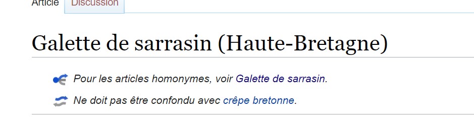 Effectivement en thĂ©orie Ă lâorigine ce ne sont pas de purs synonymes et il y a une diffĂ©rence, mais dans la rĂ©alitĂ© je nâai jamais vu trop de diffĂ©rence (notamment dâĂ©paisseur) entre une bonne crĂȘpe blĂ© noir Ă Audierne et une bonne galette de sarrasin Ă Rennes.