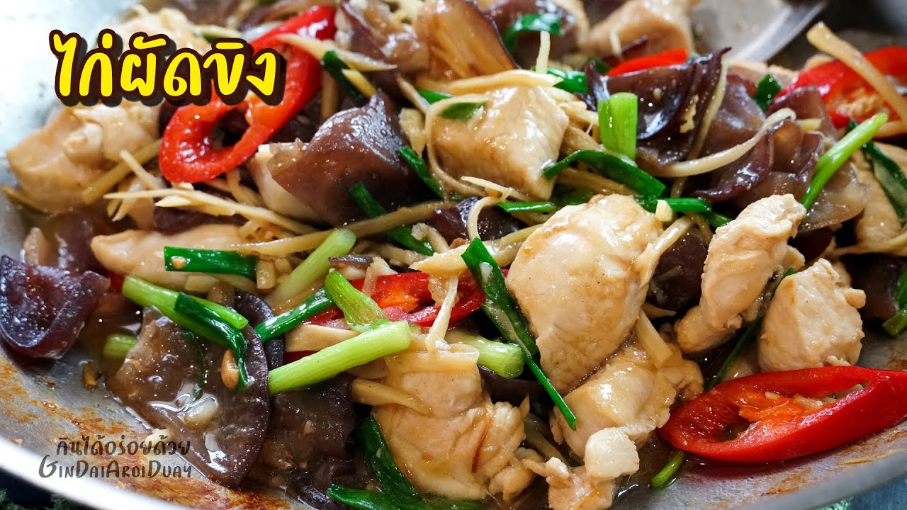 Dommage je n’ai pas fait de photo du plat une fois fini mais j’ai testé une recette d’un pat king kaille ผัดขิงไก่ poulet sautées au gingembre