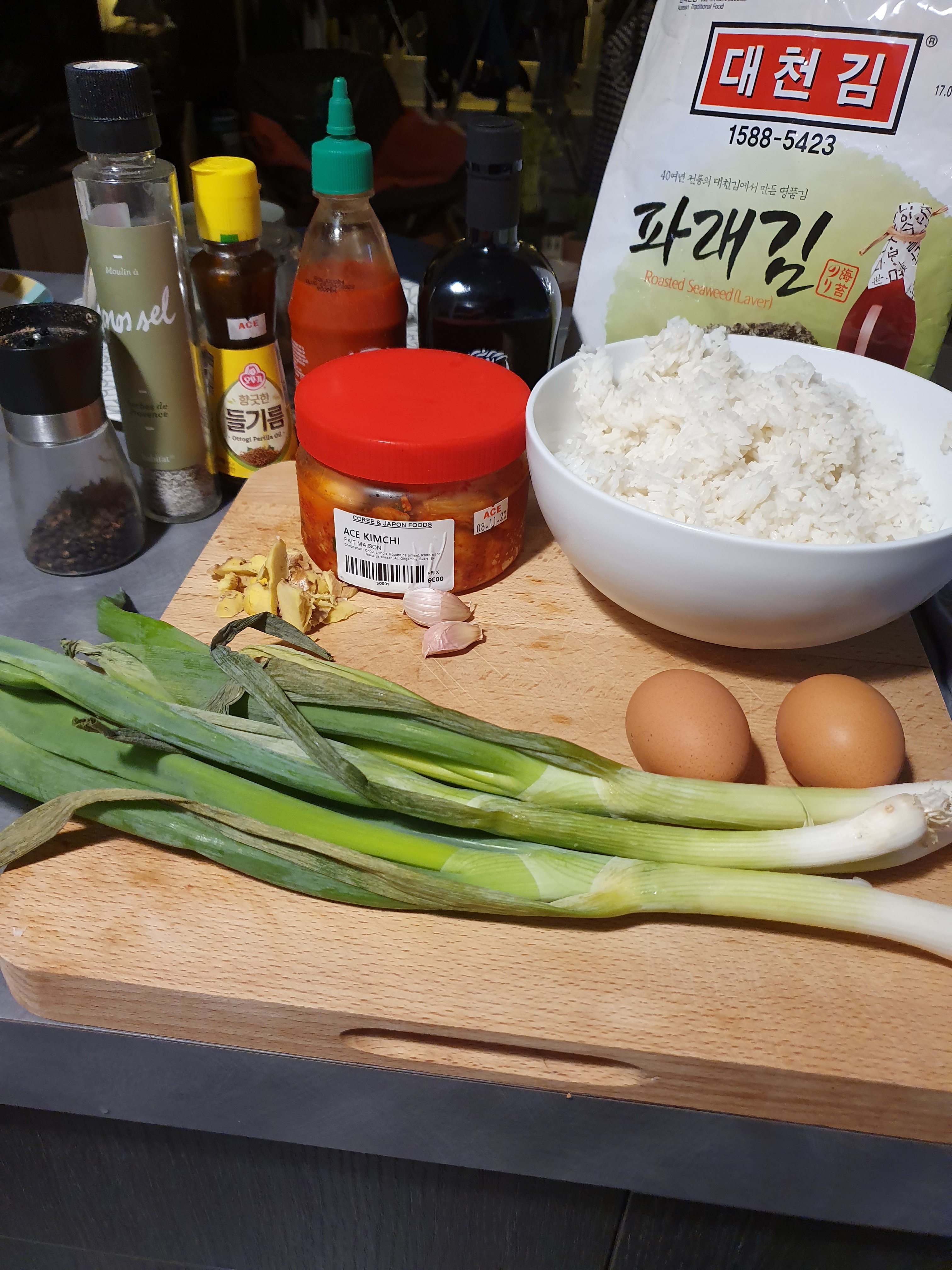 LâidĂ©e de base câest toujours riz, oignons ou pousse dâoignons/cebette et de lâoeuf. Et aprĂšs on rajoute ce quâon a sous la main comme lĂ©gumes ou autres