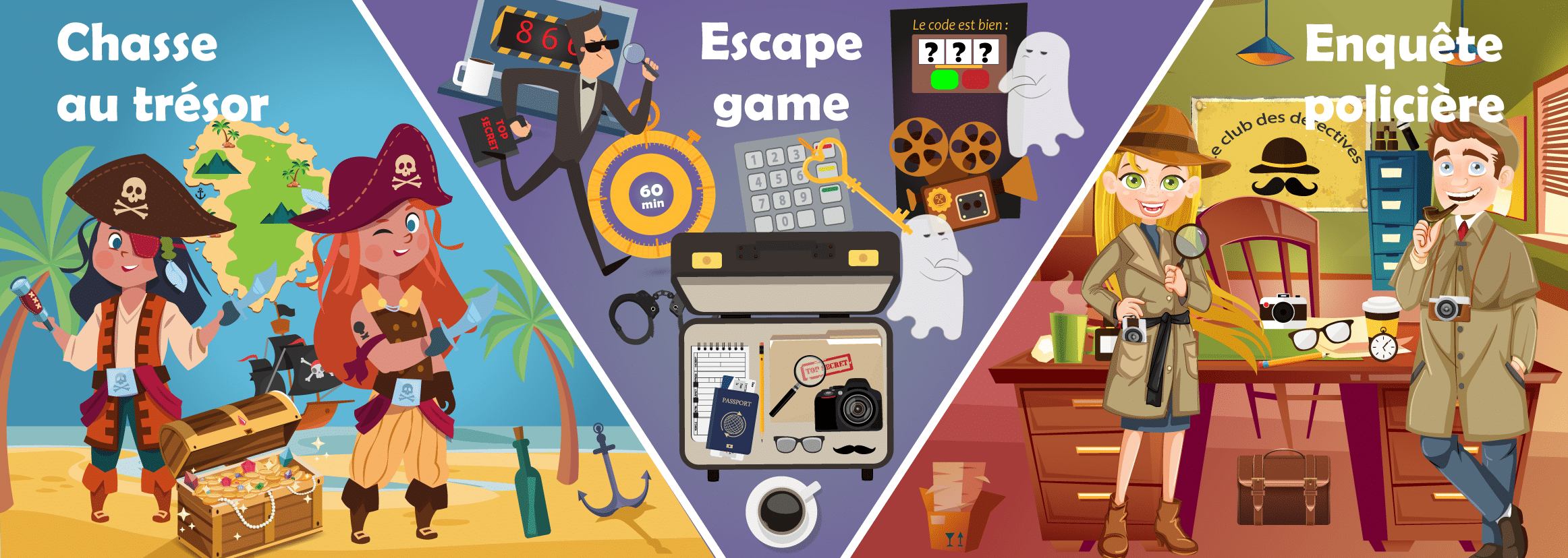 Un site qui propose des « packs » chasses aux tresors / enquĂȘtes, assez bien fait je trouve.