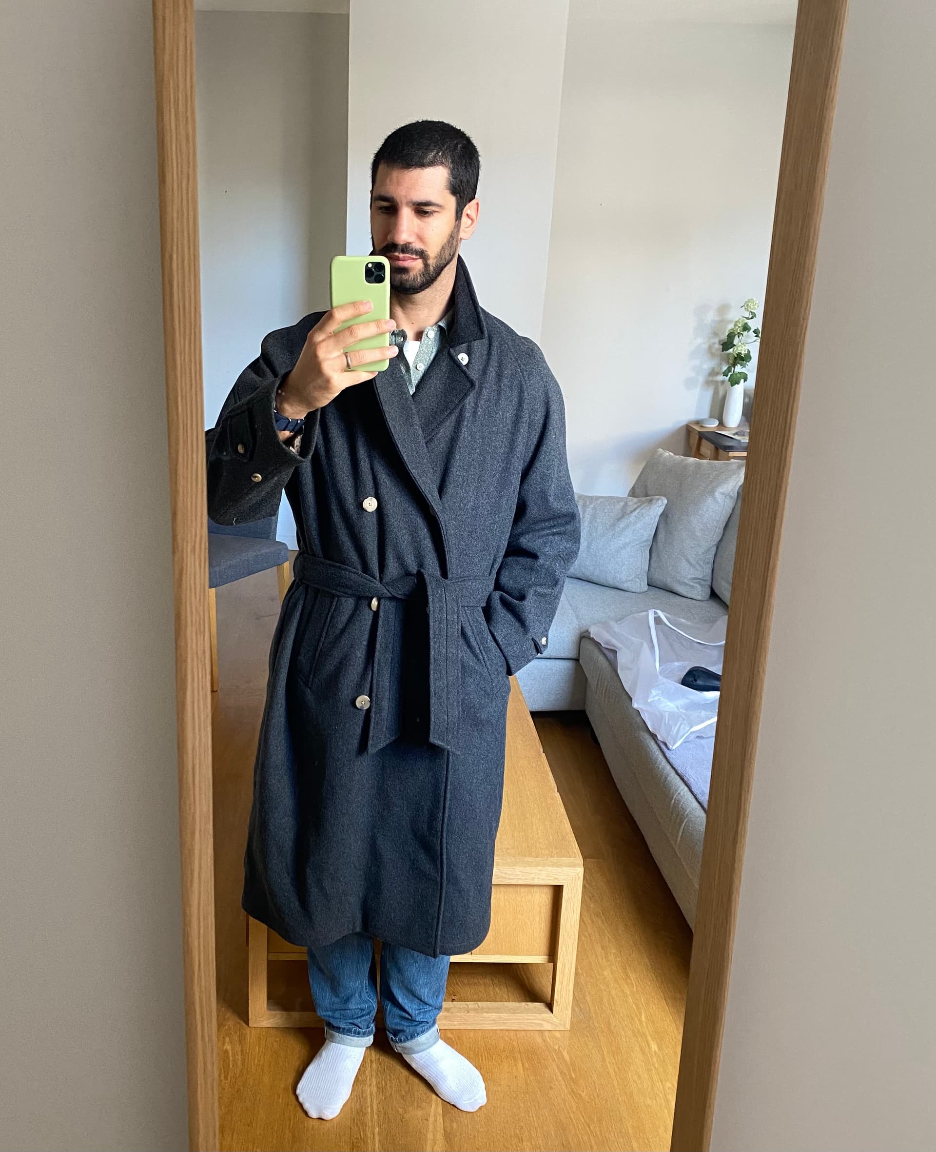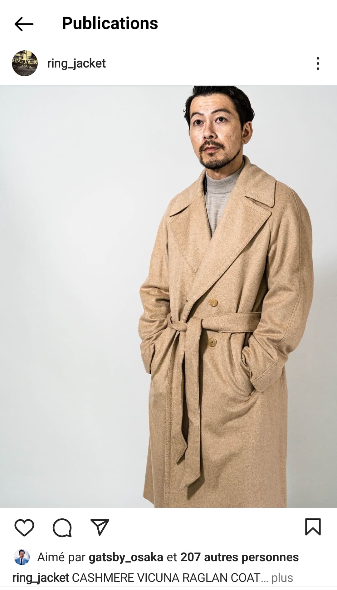 Je cherche un manteau croisé camel en laine de chameau bien épaisse depuis pas mal de temps et je suis tombé amoureux de celui fait par De Bonne Facture en 2020, édition 15 que l’on voit sur le post sur lequel je réponds.