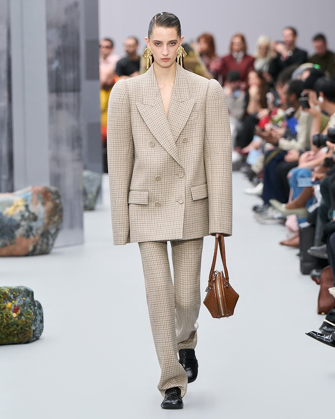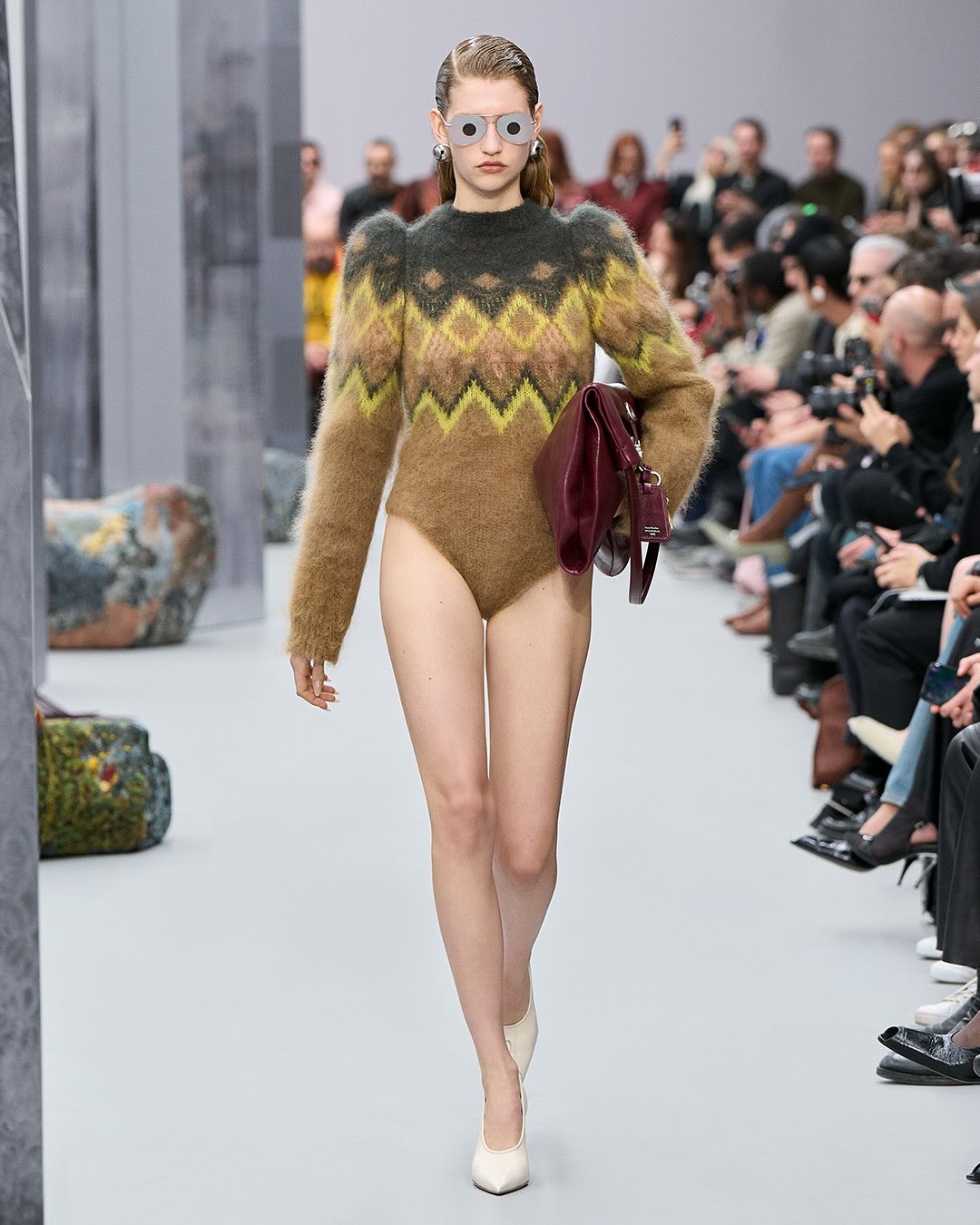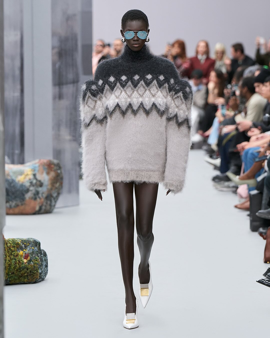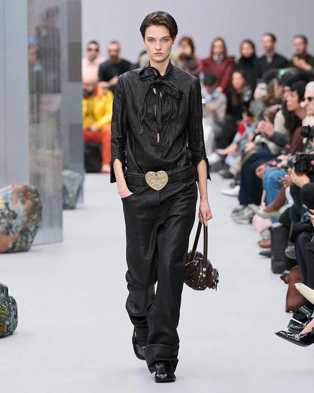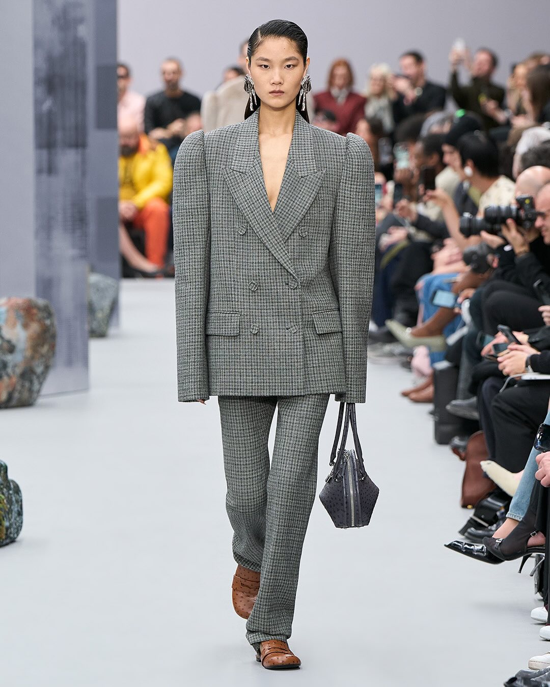 ACNE femme FW2025, le retour du mohair et quelques silhouettes qui me font penser au défilés dans les années 80 avec les vestes costumes épaules larges, ici même oversize et d’autres dingueries en fourrure / cuir / transparent. En gros pas mal de diversité, des trucs intéressants et des trucs qui sont clairement juste pour du catwalk. J’ai pas tout mis :