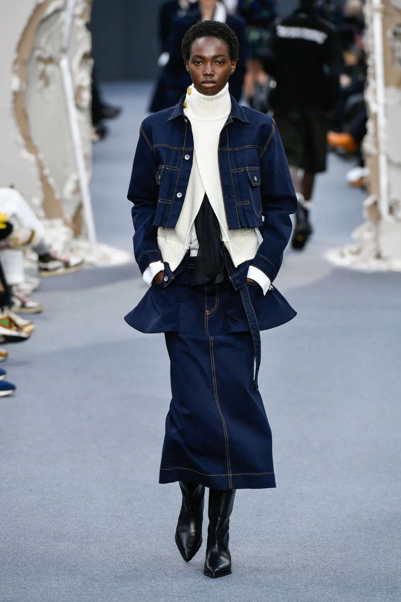 Le mélange d’influences, entre l’esprit tailleur où Max a précédemment évolué et une vision romantisée du workwear français, fonctionne assez bien. La veste en denim notamment est splendide. De façon générale, la cohérence et le nombre des pièces impressionnent sérieusement pour une première collection.