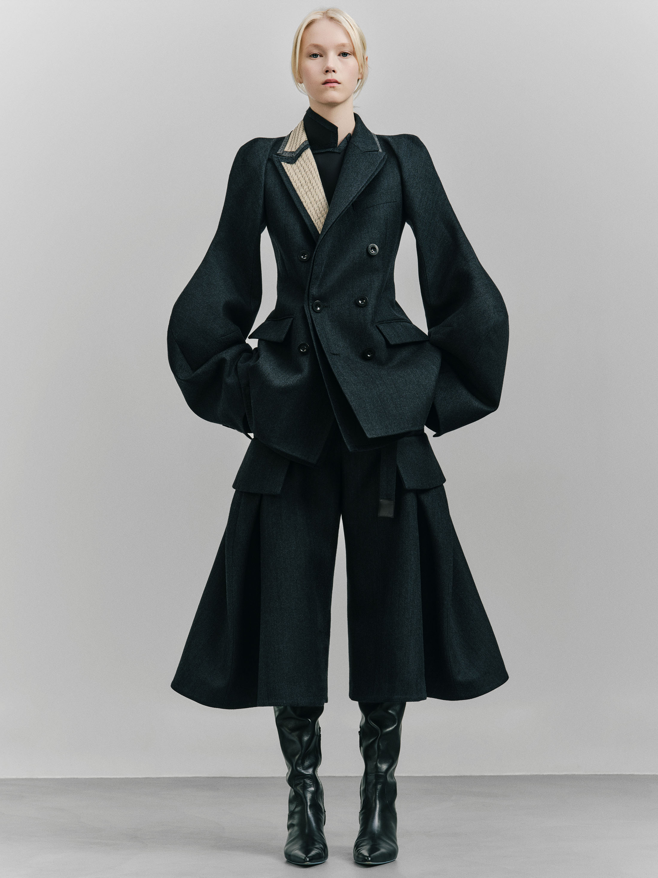 On voit malheureusement mal toutes les qualités et tous les détails qui font l’intérêt des pièces sur les photos du défilé (et je n’ai pas eu la présence d’esprit d’en prendre quand je les ai eues entre les mains …). Je complèterai le post si jamais je vois passer des packshots ou photos de détails en ligne.