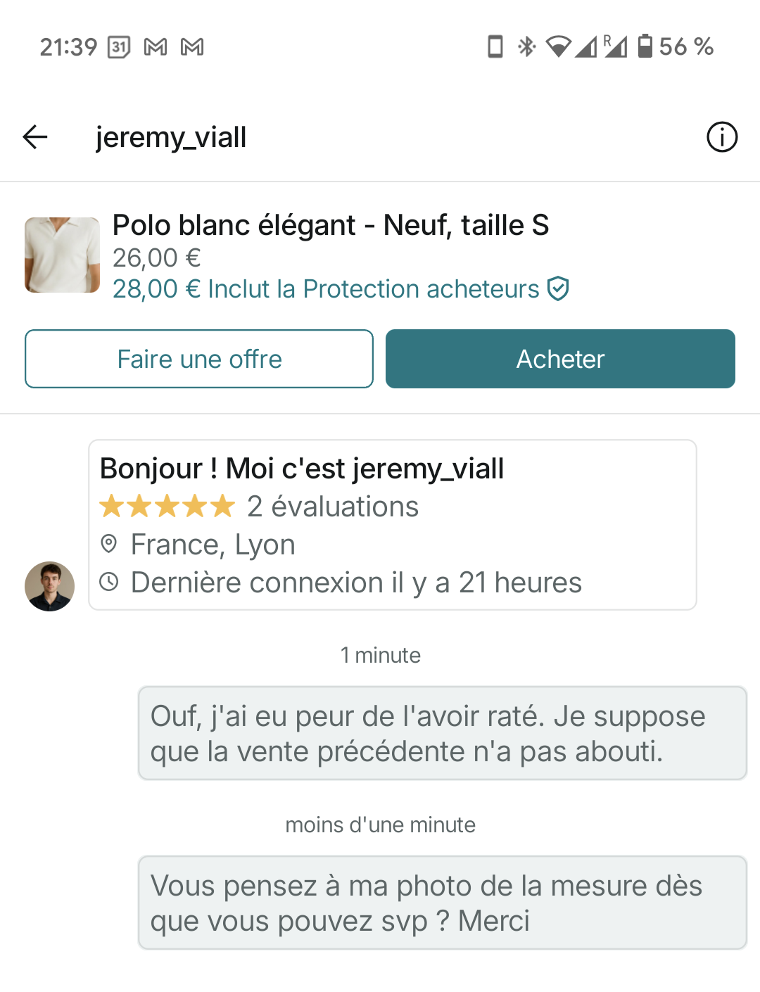 Tu as contacté le mec du profil Vinted partagé par @Fennec ?