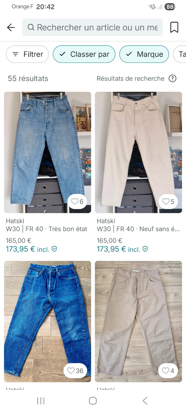 Jâai mis deux articles Ă vendre sur mon dressing (un pant hatski et un edwin).