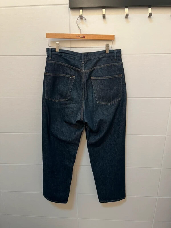 Quelle ne fut pas ma surprise de voir mon acheteur revendre, quelques jours plus tard, le même denim, présenté comme “neuf avec étiquette” (l’étiquette fièrement attachée dessus), à 220 euros ? Je suis absolument certain que c’est le mien, car il a un léger accroc en haut à droite de la poche arrière gauche (visible sur la photo), que j’avais d’ailleurs signalé dans mon annonce.