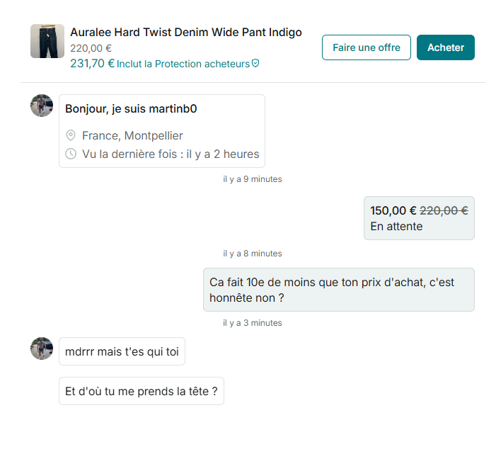Les gens sont des raclures sur Vinted épisode 30409.