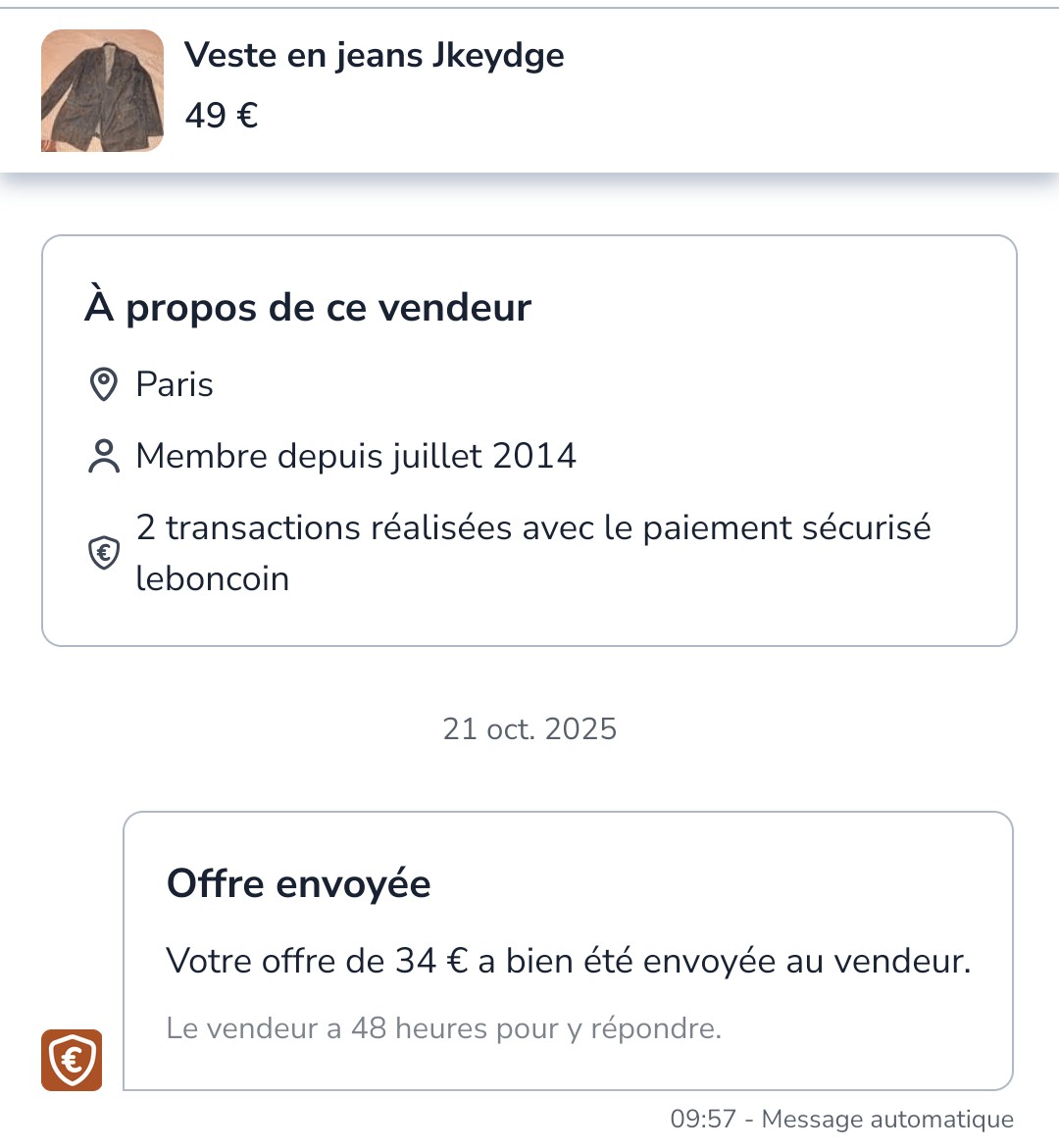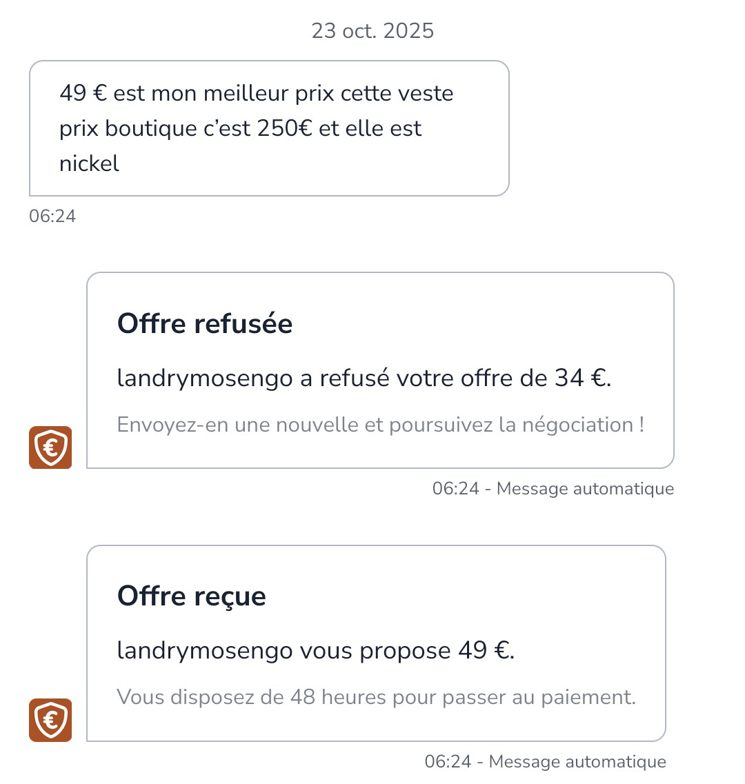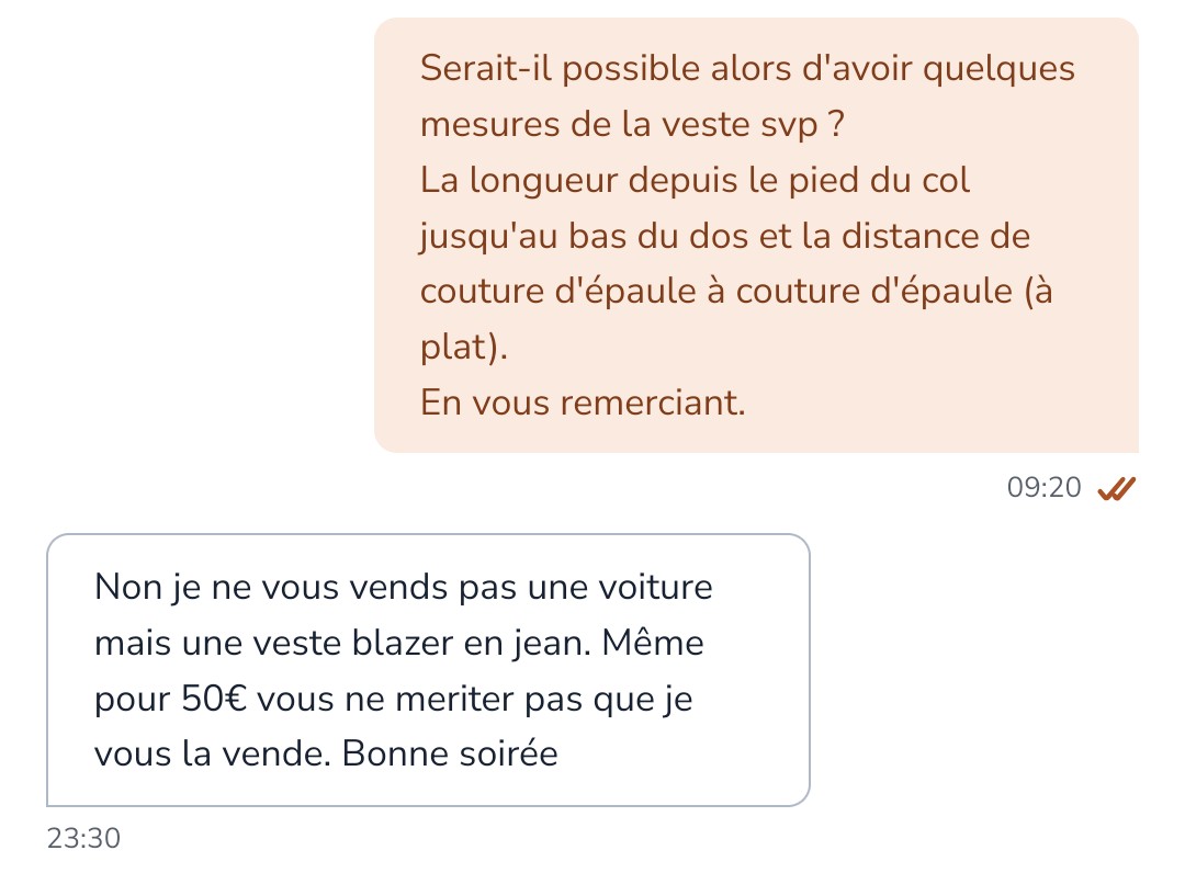 par contre, pour finaliser ton oeuvre qui commençait sans bonjour “ok je comprends mais on dit “veste en denim”, même à 49e”