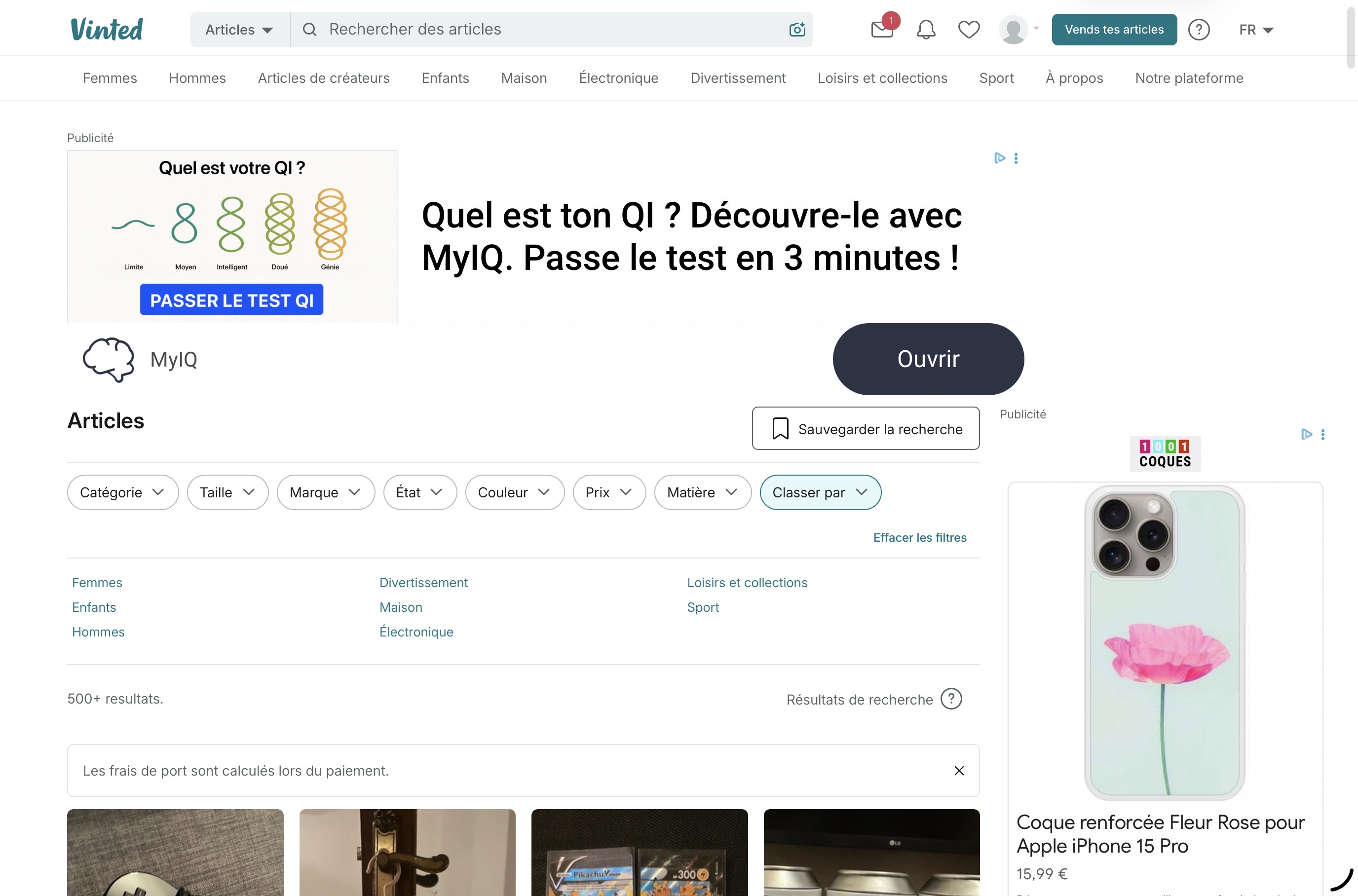 En plus des rĂ©sultats nuls mon Vinted est rempli de pubs depuis aujourdâhui, sur un navigateur sur lequel il ne me semble ne jamais avoir mis dâadblocker.