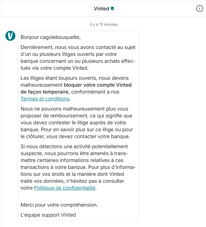 Je nâai jamais ouvert de litige sur ce compte, et jamais eu de contact