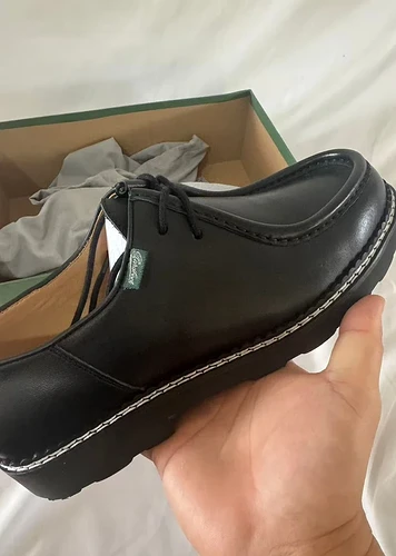 Il nây a rien qui va : boat shoe dans le titre, Thiers dans la description alors que ce sont des mauvaises fakes de Michael⊠Ils nâont honte de rien. Ah si ! De la forme de lâavant quâils masquent autant quâils peuvent sur les photos.