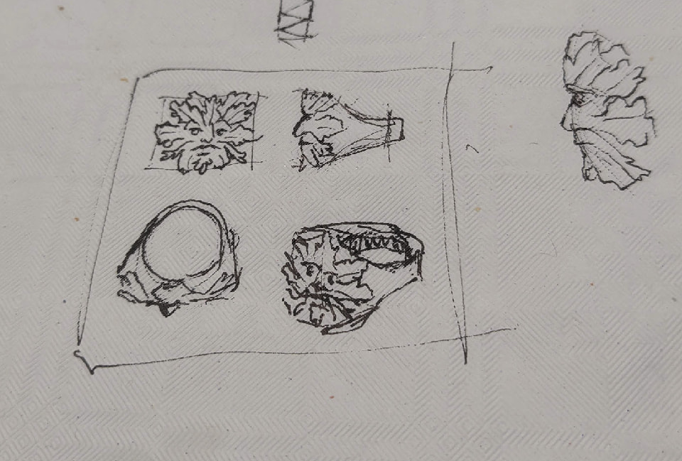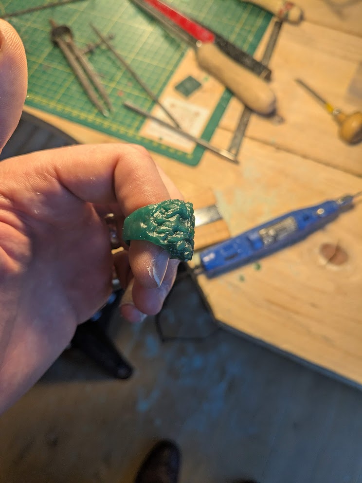 On est tous les deux parti sur un projet de bague, Rems une chevalière et moi un projet un peu trop ambitieux de bague avec une tête de feuillu :