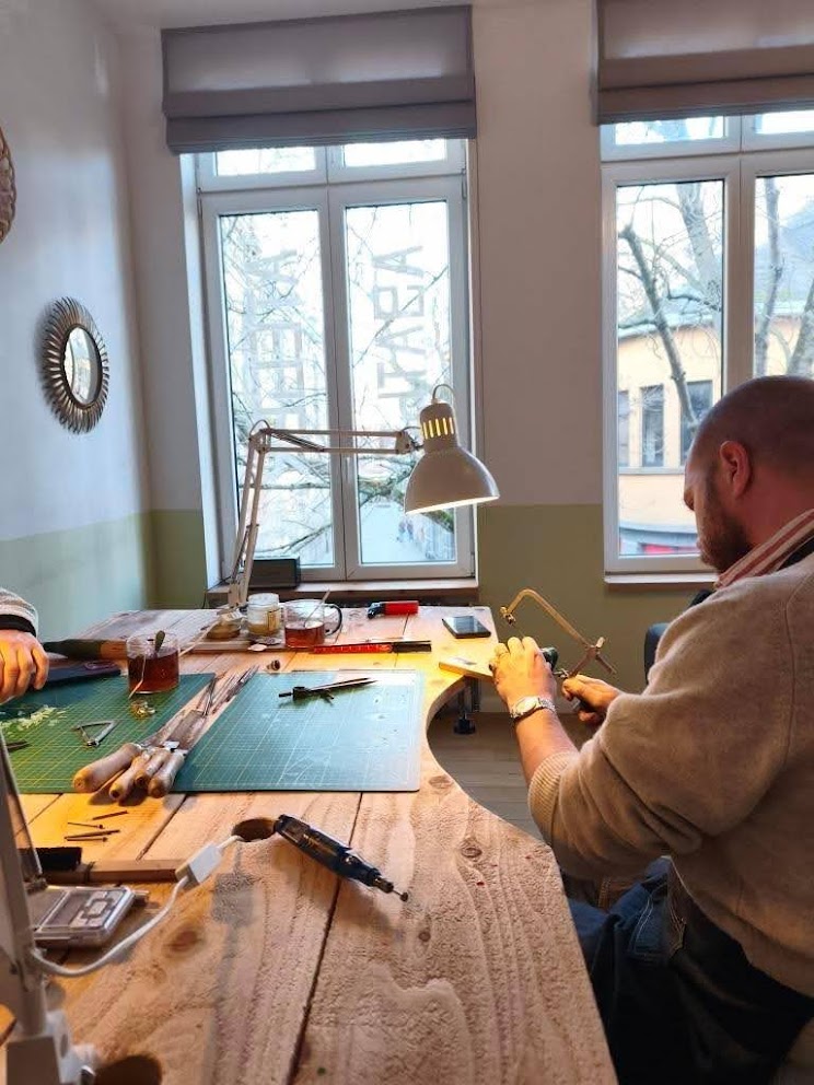 Au programme, deux heures d’atelier pour réaliser son projet de bijoux en argent en utilisant la technique de la cire perdue. En gros on sculpte un bloc de cire qui servira à faire un moule en plâtre dans lequel l’argent sera coulé.