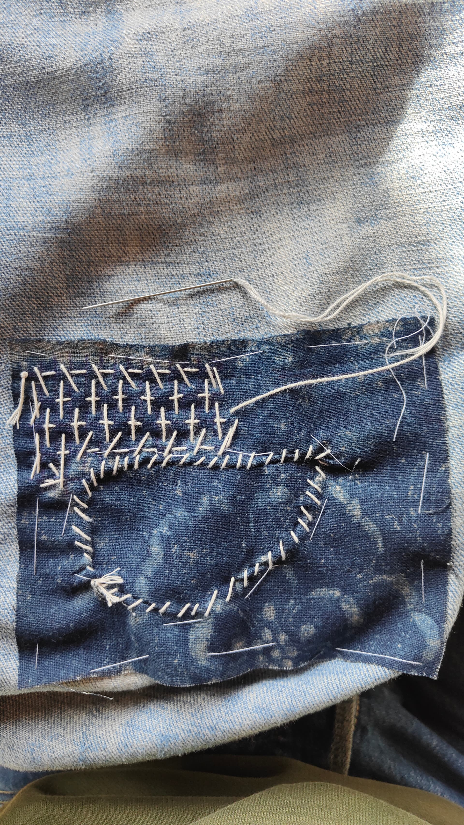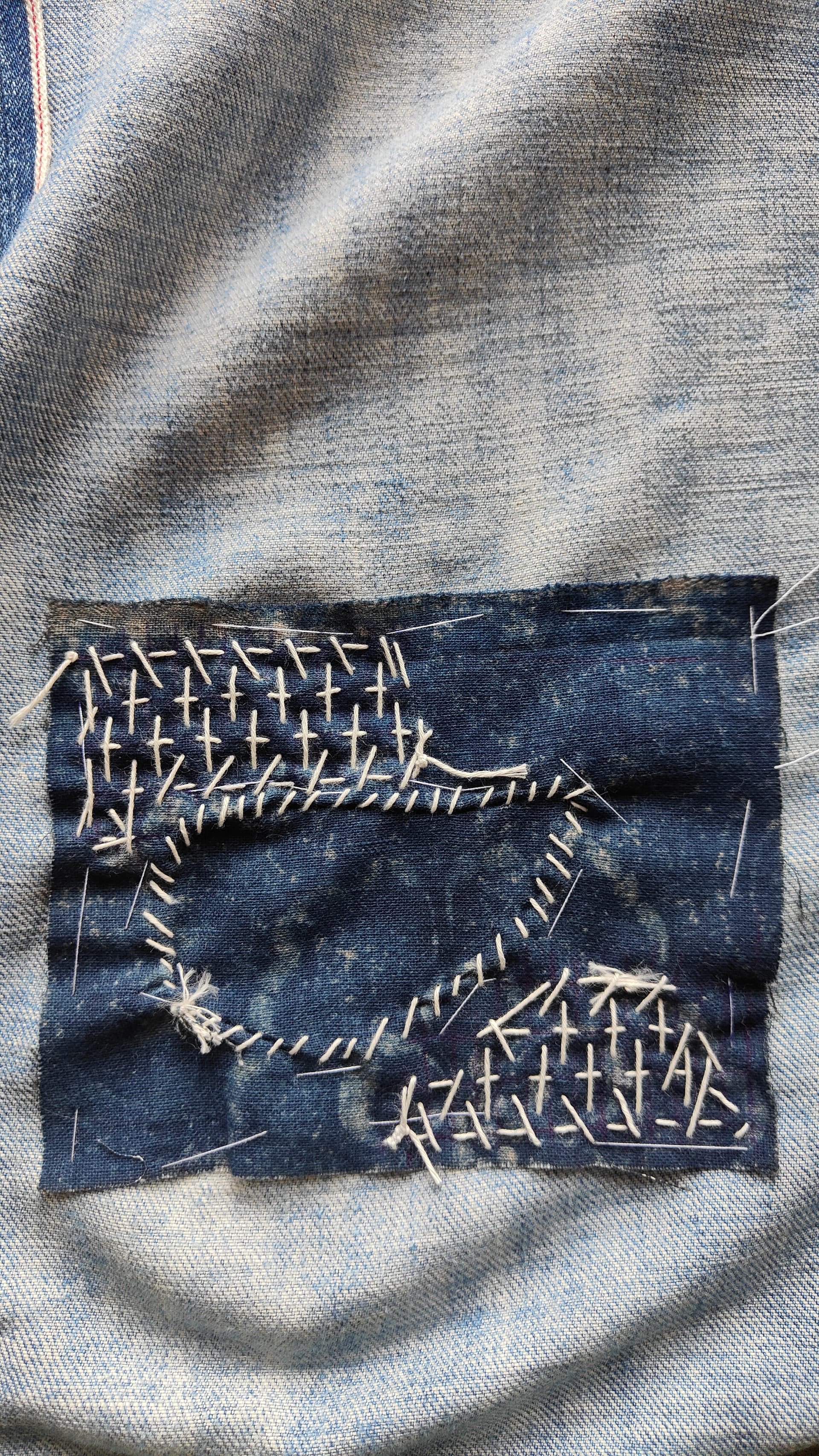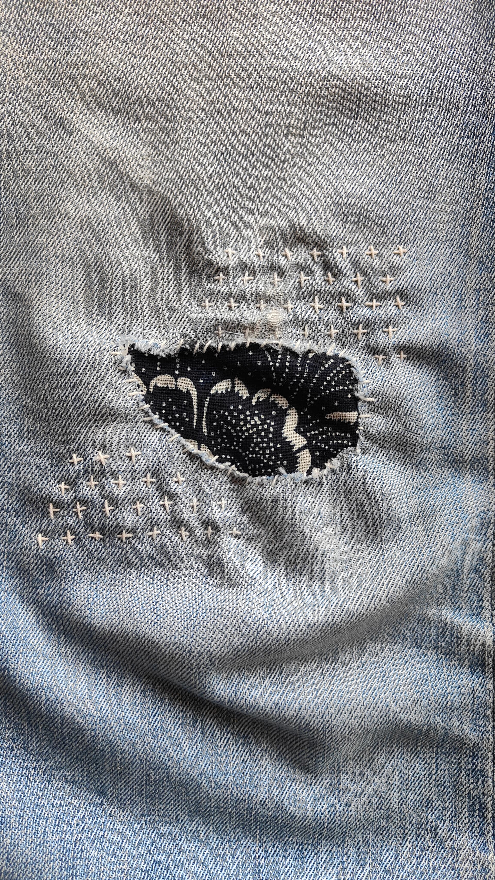 Au détour d’une boutique à St Rémy de Provence, je suis tombé sur ce kit Sashiko/Boro (aiguille, fil, coupons de tissus japonais) qui tombait à pic car j’avais un jean a réparer. Donc je vais me lancer.
