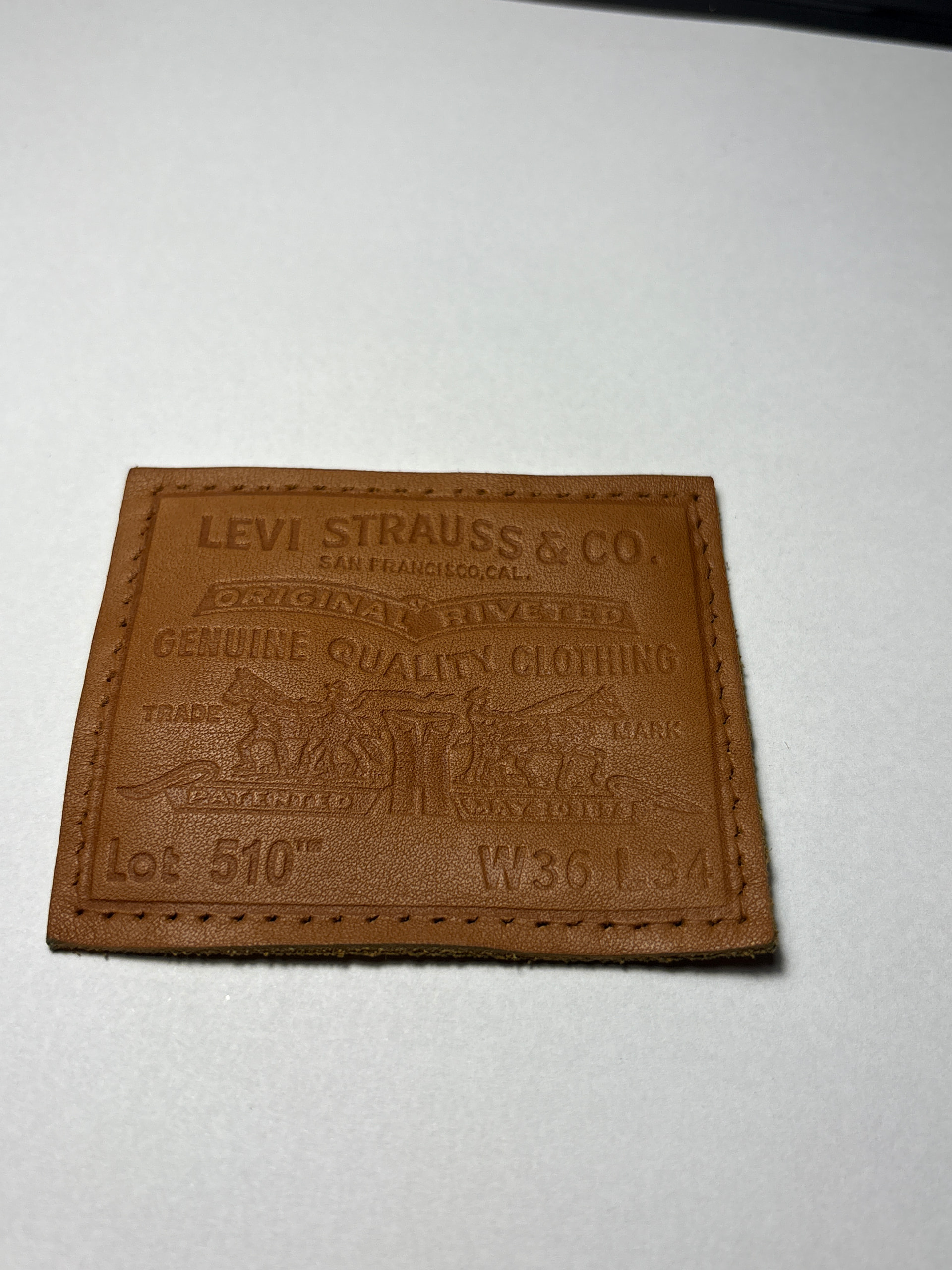 J’ai retiré un jacron épais d’un Lévis « premium » pour voir si c’est du cuir et sachant que ça déteint pas et voir si je peux pas m’en servir en le mettant sur le verso qui n’est pas stampé mais j’ai pas la certitude que ce soit du cuir ou un simili, la trame derrière me fait douter, je mets la photo si ça parle à quelqu’un