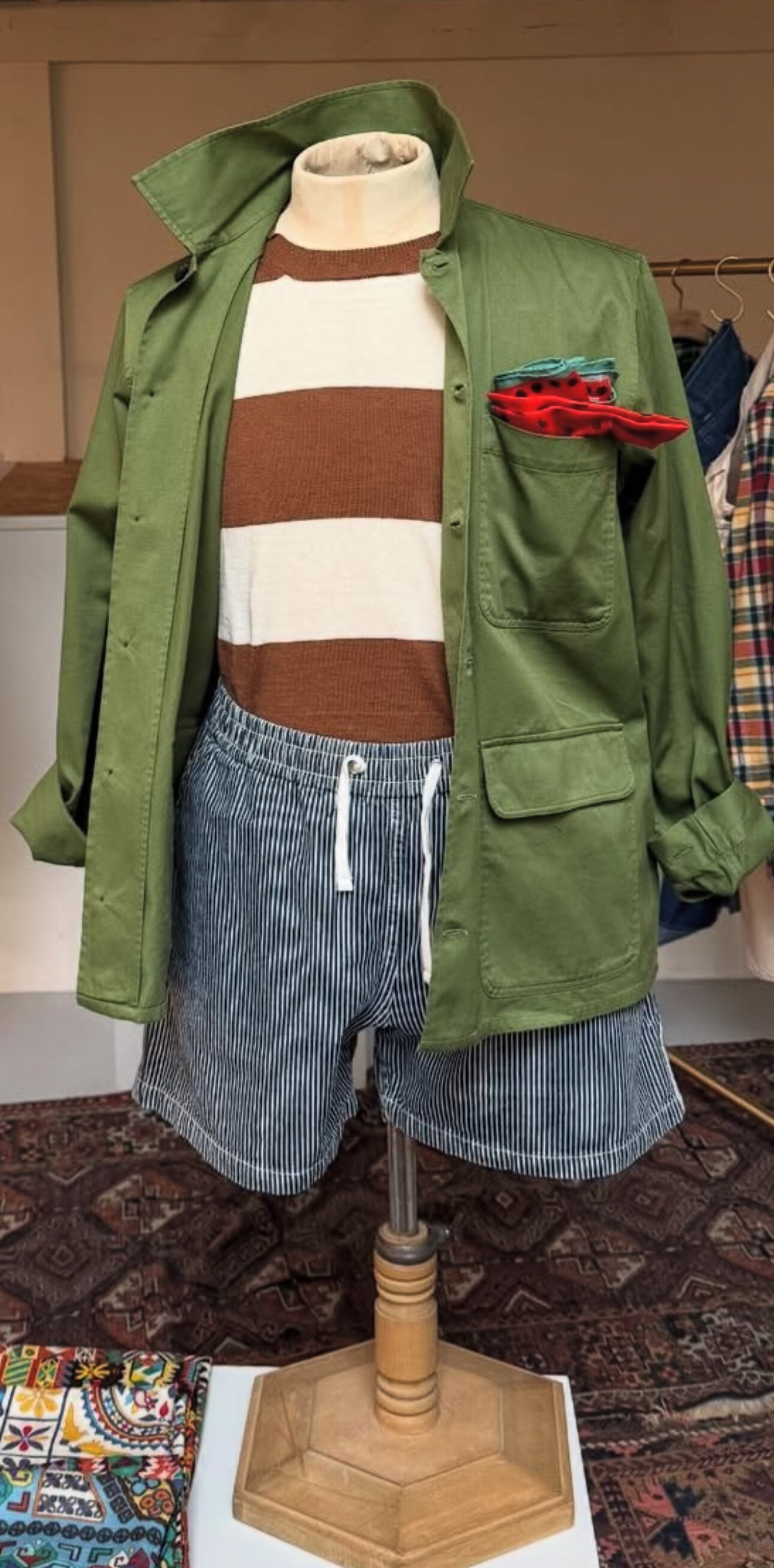 Aperçu d’une nouvelle veste olive qui va prochainement sortir. Rien d’extraordinaire mais j’aime beaucoup la vibe. Une poche poitrine et 2 poches à rabat sur les côtés. Sortie printemps/été 2026 je crois.