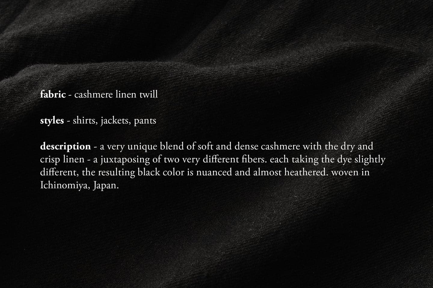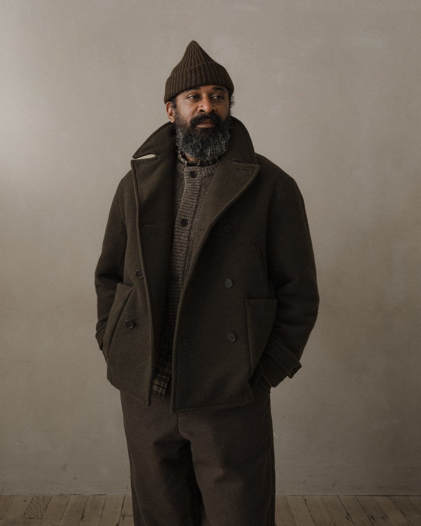 La sélection textile est probablement l’élément qui évolue le plus rapidement et qui a continué à le faire depuis 2015. Au début, je travaillais avec tous les tissus qui me tombaient sous la main — j’achetais principalement des rouleaux de stock dormant auprès d’usines locales, ce qui signifiait surtout des tissus pour vêtements de travail comme la toile et le denim. Au fil du temps, j’ai fait des recherches et j’ai trouvé des entreprises de tissus avec des programmes de stock ou des minimums peu élevés, ce qui m’a donné accès à des matériaux plus intéressants. L’évolution s’est poursuivie au cours de la dernière décennie — en travaillant avec des producteurs de plus en plus petits afin de trouver ce que je considère comme certains des textiles en fibres naturelles les plus uniques et les plus rares dans le monde.