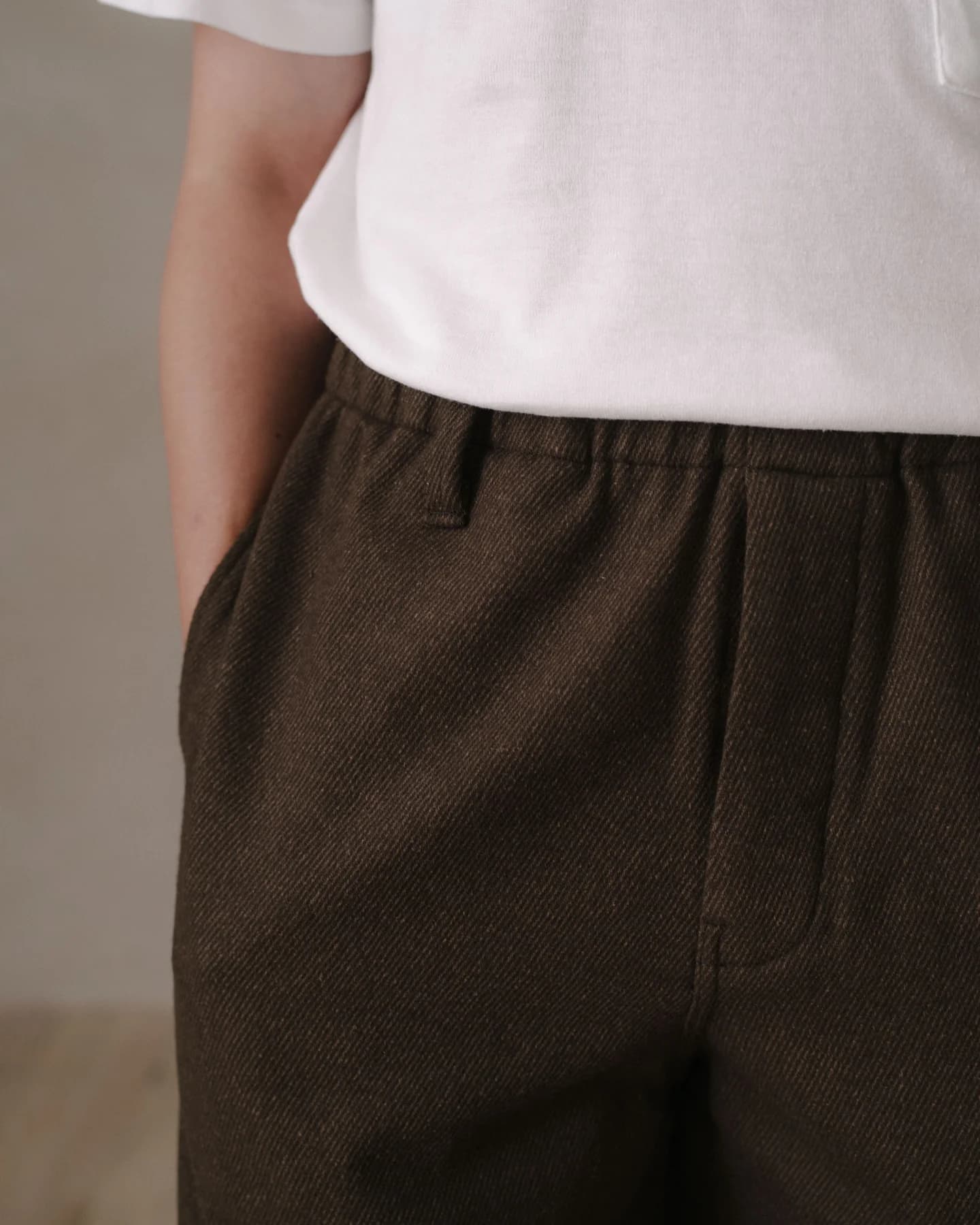 EK- En ce qui concerne les styles et les formes, cela correspond à ma façon de m’habiller, et ce depuis le début. J’ai fréquenté une école de stylisme pour apprendre à me faire des vêtements. Ce que j’ai fait en 2015, c’est ce que je portais à l’époque. Cela a continué à évoluer chaque année, en introduisant un ou deux nouveaux styles lorsque je me concentrais sur une nouvelle pièce à porter. Nous produisons encore toutes les formes de 2015, ce que je trouve plutôt cool. C’est quelque chose que j’ai toujours voulu voir davantage chez des marques plus anciennes - afin que les classiques perdurent, et qu’il y ait toujours une sélection de pièces emblématiques disponibles. Nous nous limitons également au niveau de compétence de notre modélisme en interne, ce qui ne durera peut-être pas éternellement, mais qui est important à mes yeux pour donner au produit son ADN unique ; chaque pièce passe du stade d’idée à celui d’échantillon cousu dans notre studio.